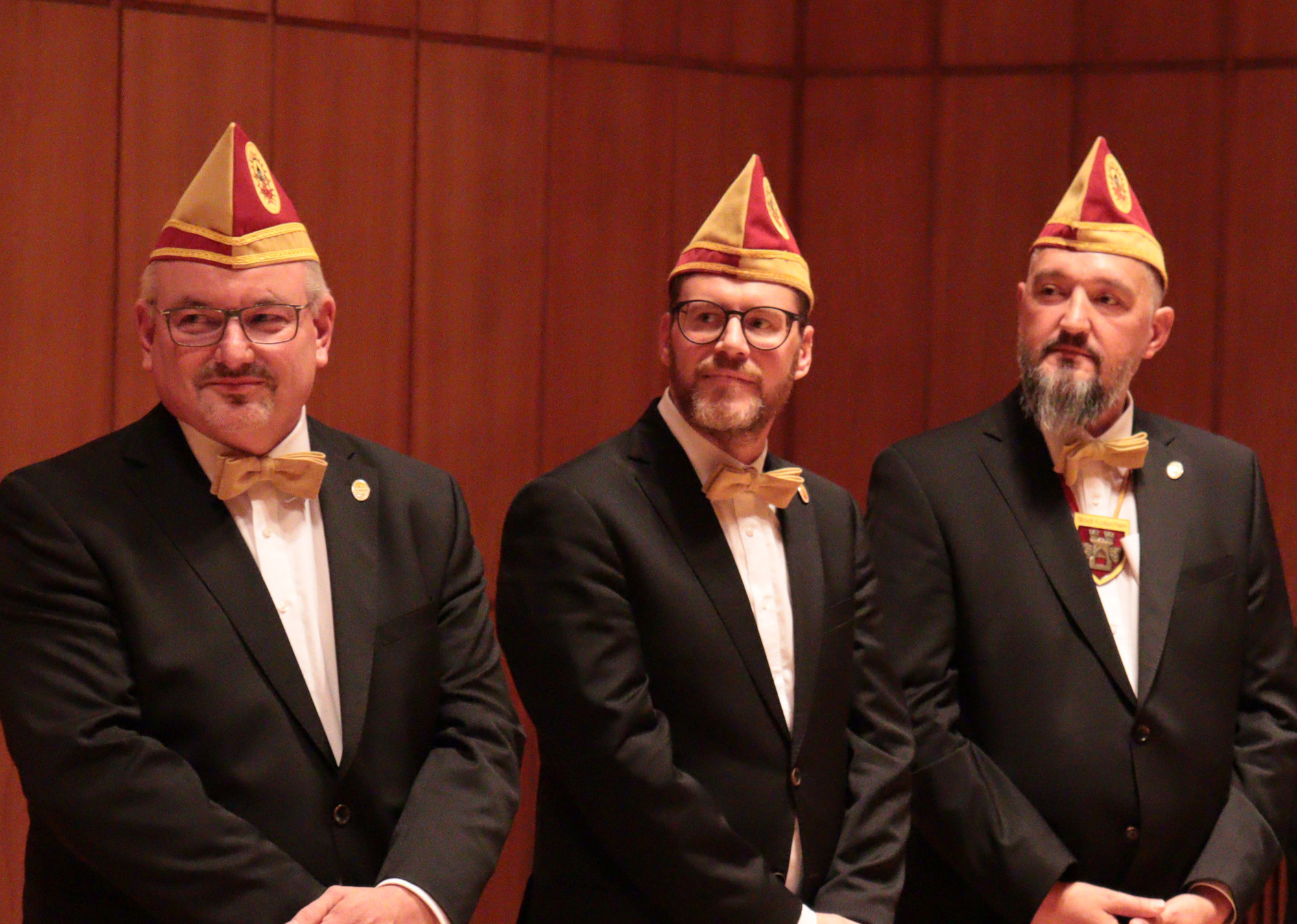 Bürgermeister Sacha Reichelt begrüßte das designierte Dreigestirn Prinz Tobi I. (Wiesen), Bauer Sascha (Kremp) und Jungfrau Martina (Martin Nießen) aus der Euskirchener Narrenzunft sowie den zukünftigen Küfer Ricardo Mota Ramos von der Euskirchener Prinzengarde im Ratssaal der Stadt Euskirchen.