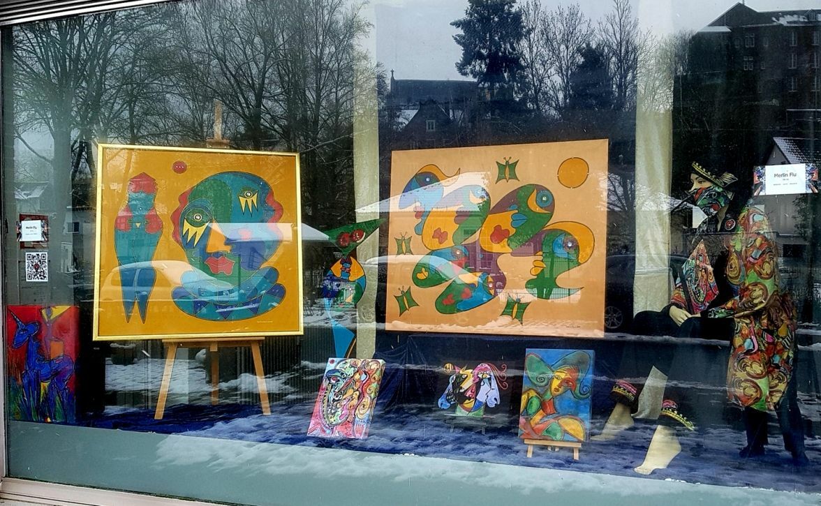 »Kunst sichtbar machen« - darum geht es der Galerie Eifel Kunst in der Zeit der Pandemie und des Lockdowns. Künstlerinnen und Künstler können nicht mehr auf ihrem gewohnten Weg ihre Kunst präsentieren. Ausstellungen müssen coronabedingt ausfallen. Die Galeristin der Eifel Kunst, Marita Rauchberger, suchte dafür neue Wege. Und fand sie zusammen mit Bianca Renn, Wirtschaftsförderin der Stadt Schleiden. Wie nahezu alle Kommunen findet man auch in Schleiden Leerstände der Geschäfte. »Das fällt in Zeiten von Corona noch intensiver ins Auge«, so Marita Rauchberger. Die Idee, Kunst vollkommen coronakonform in den Schaufenstern der leerstehenden Geschäfte zu zeigen, nahm schnell Gestalt an. Heinz Bert Hoss und Elmar Scholzen stellten ihre Immobilien gerne zur Verfügung, auch damit das Stadtbild bunter wird und die Menschen sich an den aufgehübschten Schaufenstern freuen können.