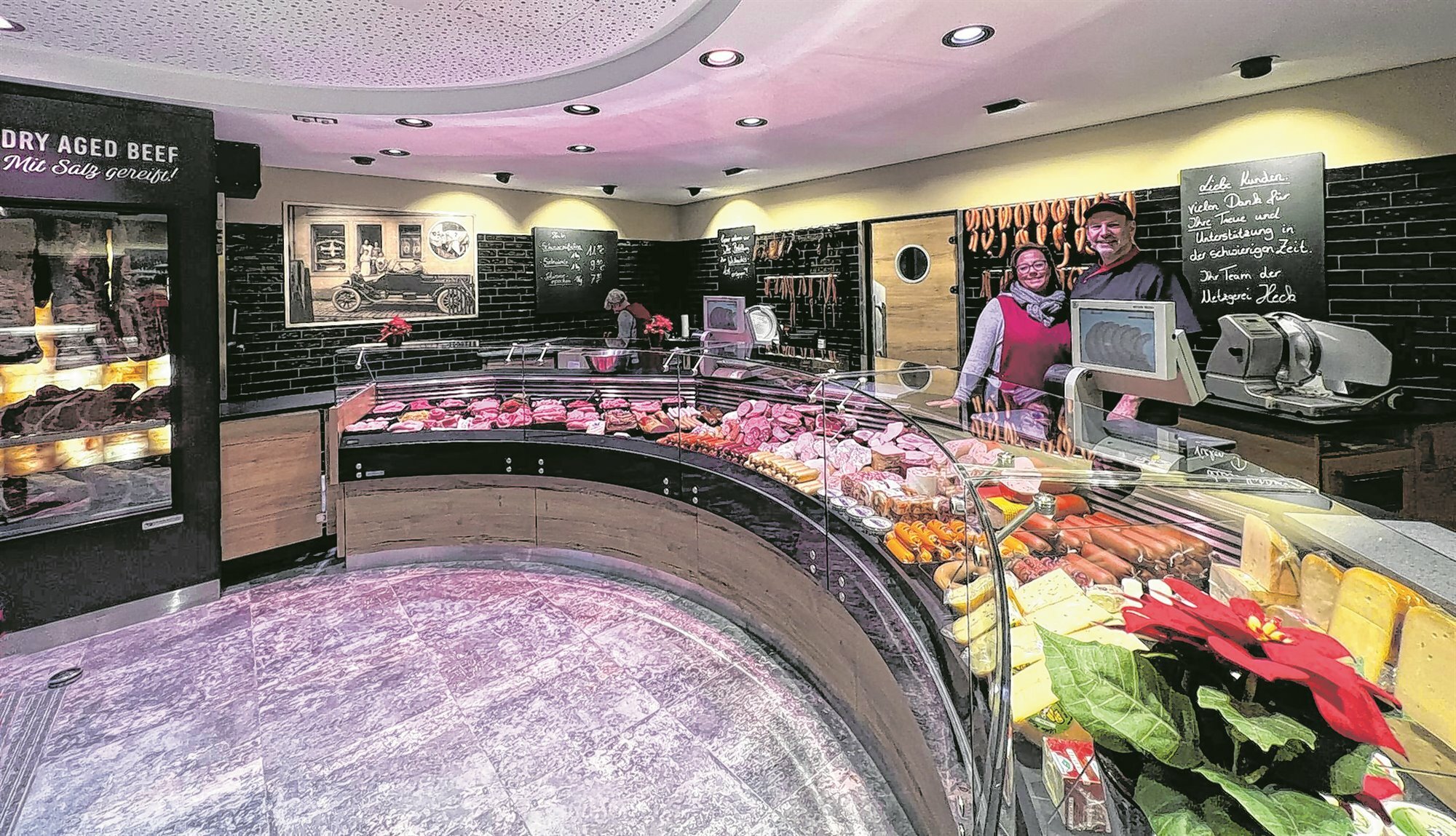 »Wir sind sehr froh, dass wir keinen unserer 12 Mitarbeiter entlassen mussten - auch dank der Treue unserer Kunden«, sagt Nadine Heck-Weber. Die lange Zeit der Komplettsanierung und der große Aufwand haben sich am Ende wirklich gelohnt. Die neue Metzgerei Heck ist ein richtiger Hingucker geworden. Kunden, die das Geschäft betreten, haben dank der halbrunden Theke gleich das gesamte Warenangebot im Blick. Es wird dank der Farbgebung mit schwarzen Wand- und grauen Bodenfliesen sowie der indirekten Beleuchtung sehr ansprechend präsentiert.