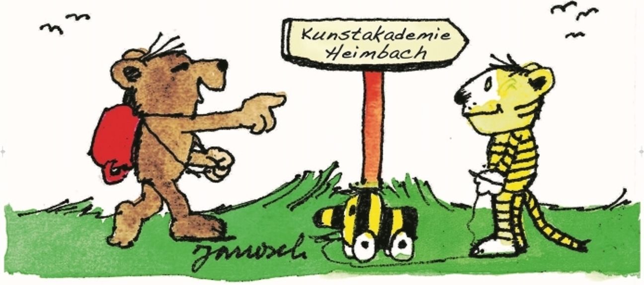 Unter dem Motto »Janosch ? Bilder vom Leben« werden im historischen Ambiente der Burg Hengebach täglich von 10 bis 18 Uhr, donnerstags bis 22 Uhr, über 150 originale Zeichnungen und Druckgrafiken gezeigt. Die detailreichen Bilder geben Einblicke in das künstlerische Schaffen des populären Illustrators und laden ein, seine berühmten Figuren und Geschichten ganz unmittelbar zu erleben. Ob der kleine Tiger und der kleine Bär, die Helden aus dem weltberühmten und preisgekrönten »Oh wie schön ist Panama«, ob Kasper Mütze oder Emil Grünbär ? die Figuren aus den weit über 150 Kinderbüchern des heute 81jährigen Janosch haben etwas ausgesprochen Sympathisches aber auch Hintergründiges. Die von ihm erschaffenen Bildwelten und -wesen sind zu unverwechselbaren Markenzeichen seiner Kunst geworden. Die in ihrer Reduktion auf den ersten Blick ausgesprochen einfachen, aber zugleich eindringlichen Bilder zeichnen sich sowohl durch ihre markante Farb- und Formensprache als auch durch ihren ganz eigenen Stil aus, der nicht nach Perfektion strebt, sondern wie flüchtig skizziert wirkt. Eingängig und ästhetisch, alltäglich und tiefgründig Die »Tigerente« ist dafür ein Paradefall. Die Bildgeschichten, in denen die kleine gelb-schwarz gestreifte Rollente meist als Begleiterin der anderen Figuren erscheint, sind nicht nur eingängig und ästhetisch, sondern auch alltäglich und zugleich tiefgründig. Ob in Arztkittel oder Anzug, mit verbundener Nase oder in bunten Hosen ? die mit menschlichen Eigenschaften und Kleidungsstücken ausgestatteten Tiere spiegeln das pralle Leben mit Freud' und Leid, mit Freundschaft und Streit, mit Schulstress und Langeweile. In den Szenen finden sich vor allem Kinder wieder. Und immer bleibt ein Schmunzeln. Mit ihren einfachen Geschichten, mit der Mischung aus Realität und Erfindung, Liebenswürdigkeit und Schabernack, Schalk und Ermahnungen sind sie wahre Lebensbilder. Der Künstler selbst, der einmal von sich behauptete, dass er »weder malen noch schreiben könne«, lässt sich bei seiner Kunst von einer Ästhetik der Sparsamkeit leiten. Mit Poesie und sprudelnder Phantasie, aber sicherlich auch, weil er selbst im Herzen ein Kind geblieben ist, ist es Janosch gelungen, Klassiker der Kinderbuchliteratur zu schaffen. Erstes Kinderbuch im Jahre 1960 Als Janosch 1960 sein erstes Kinderbuch »Die Geschichte von Valek dem Pferd« zeichnete, hatte er seine Mission gefunden. Mit »Oh, wie schön ist Panama« landete Janosch 1978 einen Klassiker für Kinder, der auch Erwachsenen gefiel. Heute ist er einer der bekanntesten Kinderbuchautoren und Künstler der Welt. Seine Kinderbücher sind in mehr als 30 Sprachen übersetzt worden. Daneben hat Janosch zahlreiche Romane und Theaterstücke für Erwachsene verfasst, in denen er sich mit ernsthaften Themen auseinandersetzt wie Religion, gottesfürchtige Erziehung, wahre Lebenskunst und der Frage nach dem Sinn des Lebens. Seit 1980 wohnt Janosch in den Bergen von Teneriffa. www.kunstakademie-heimbach.de