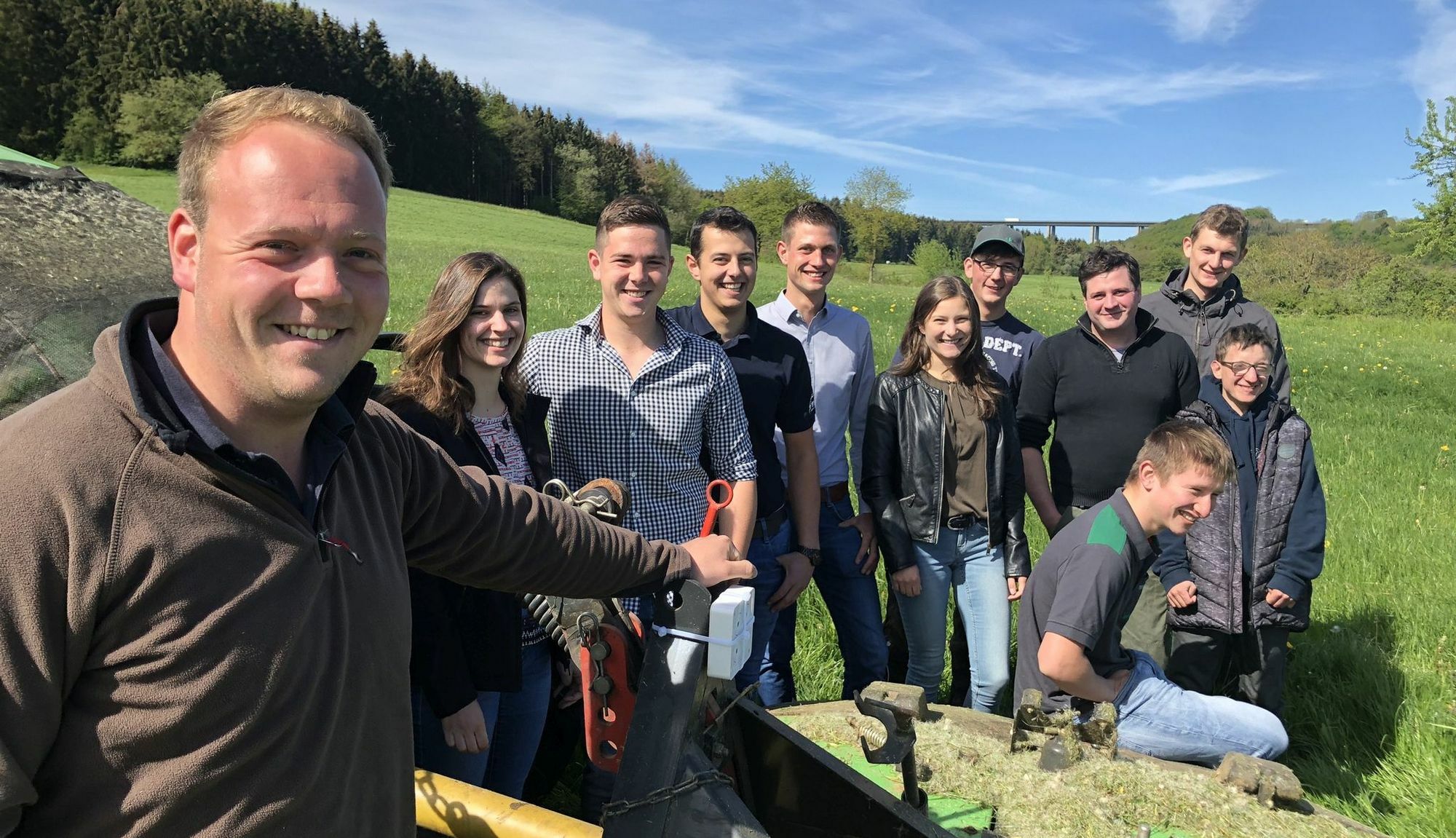 Der Kasten, der den passenden Namen »Wildretter« trägt, wird derzeit von rund 20 Jungzüchtern und Junglandwirten erprobt. Ein Teil des Clubs war auf den Hof Esch nach Pesch gekommen, wo der Vorsitzende Tobias Esch die Wirkungsweise des kleines Kastens erklärte. »Der Wildretter«, so Tobias Esch, »kann relativ einfach am Traktor oder Mähwerk mit Kabelbinder befestigt werden und wird während der Mahd eingeschaltet.« Dann sendet der Kasten, der mit Batterie betrieben wird, Hochfrequenztöne aus, die das Wild aus der Fläche vertreiben sollen.