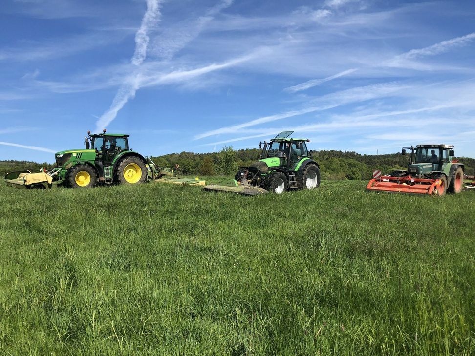 In den Wiesen piepst es - so durchdringend und laut, dass selbst der Lärm von drei Traktoren dagegen nicht ankommt. Und das ist auch der Sinn der Sache. Denn der Piepston soll das Wild aus dem Grünland vertreiben - damit es kein Opfer der Mähwerke wird.