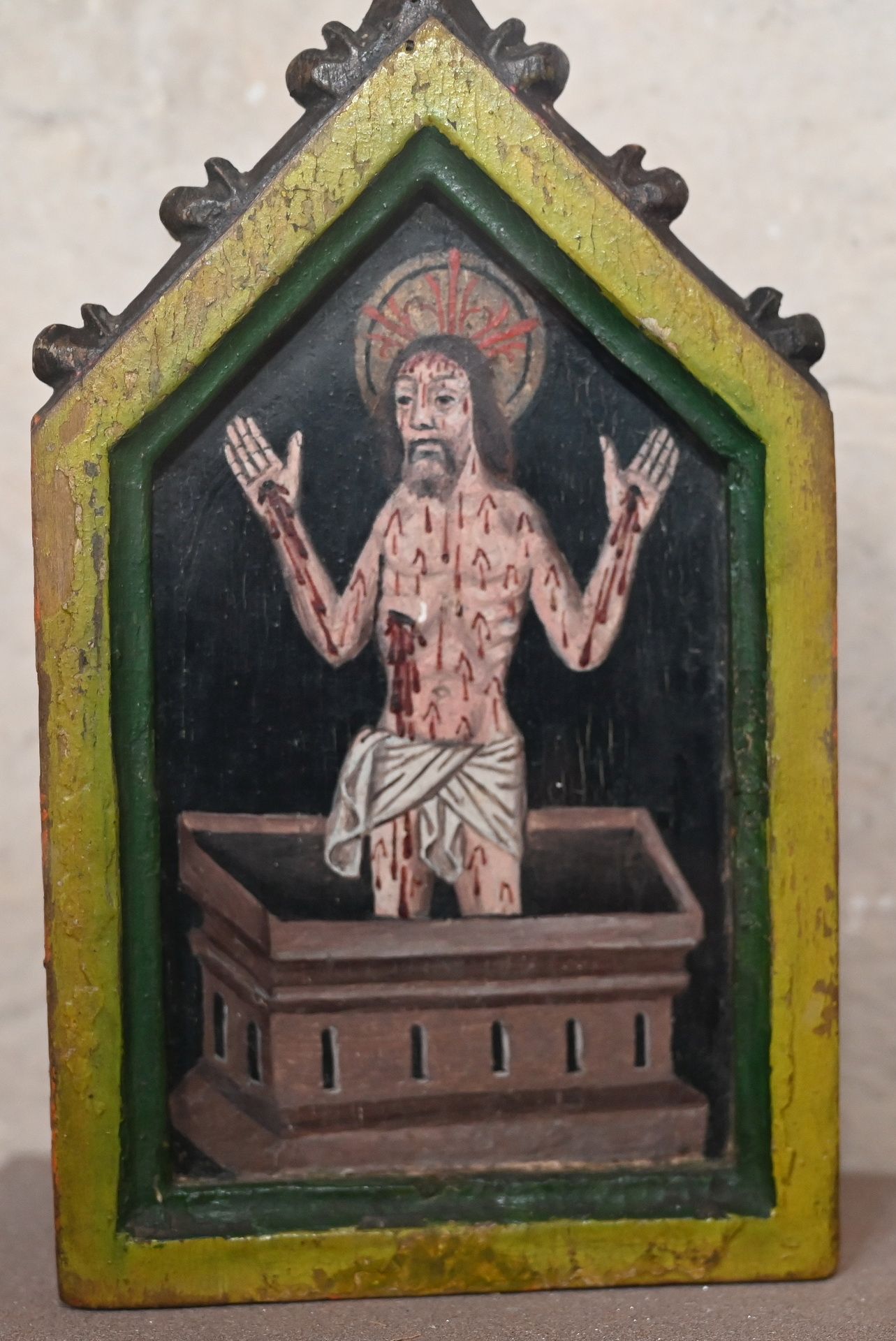 „Ich habe das Ölgemälde freilegen lassen“, berichtet Schweikert-Wehner. „Es ist das oberste von mindestens drei Darstellungen auf derselben Leinwand.“ Das Werk ist nicht signiert. Und auch nicht datiert. Der gebürtige Sinziger hält es für möglich, dass es aus einer Kölner Werkstatt der Spätgotik oder des Frühbarock stammt – vielleicht aus der Schildergasse, wo mehrere Maler dieser Zeit tätig waren, teils auch in „Teamwork“, wie man heute die gemeinsame Arbeit einer ganzen Werkstatt an einem Produkt nennen würde.