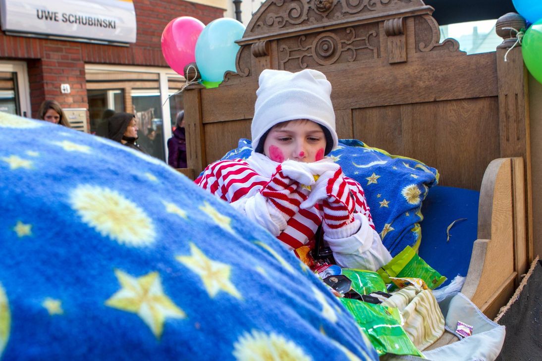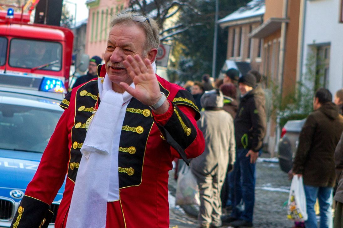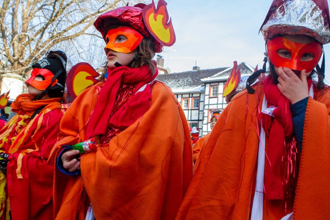 Bei strahlendem Sonnenschein, aber Temperaturen weit unter dem Gefrierpunkt starteten am Weiberdonnerstag rund 1150 Pänz zum Kinderzug durch den historischen Ortskern von Kommern - unter dem Motto: „Op en Kinderjaade oder Schull, dreimol Null ös Null, bliev Null" hatten die kleinen Jecken viel Spass. Für Willy Gemünd war es der letzte Kinderzug der Katholischen Grundschule Kommern.
