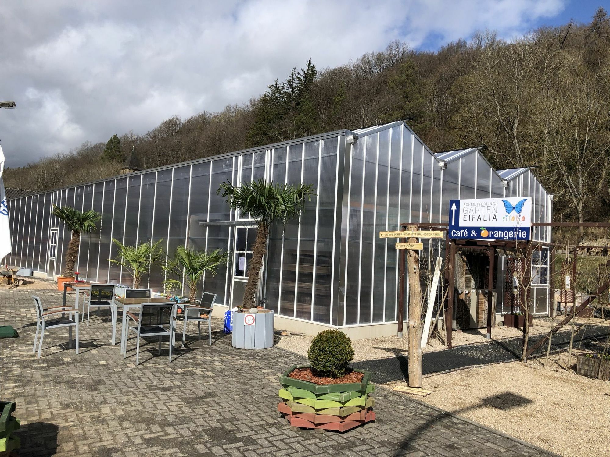 So sieht das neue Glashaus vom Eifalia Schmetterlingsgarten von außen aus.