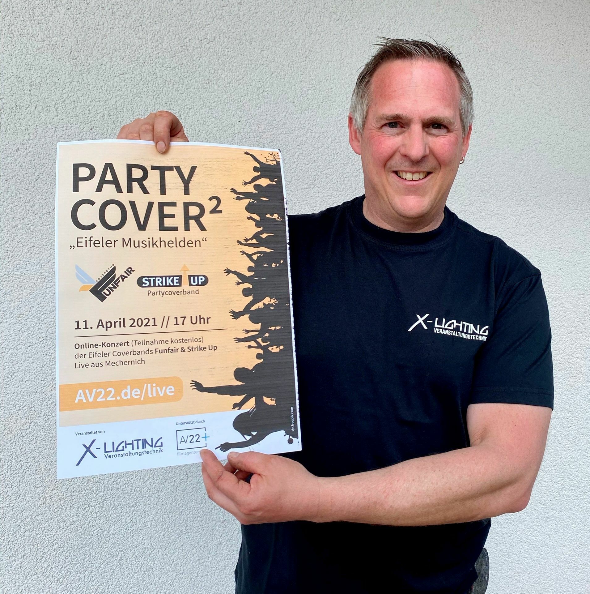 Der Stream kann auf der Website www.AV22.de/live der AV22 filmagenturplus abgerufen werden. So teilt es die Veranstaltungstechnikfirma X-Lighting aus Kommern mit. »Nach mehr als einem Jahr ohne Live-Veranstaltungen hatte ich das Gefühl, etwas für die Musikkultur in unserer Region tun zu müssen«, sagt deren Inhaber Christoph Leisten zu der Idee, die dahintersteckt. Unter dem Oberbegriff »Eifeler Musikhelden« sei eine Konzertreihe geplant, die nun am 11. April mit »Partycover2« ihren Auftakt feiert. X-Lighting stellt hierfür kostenlos das Personal und die Veranstaltungstechnik zur Verfügung, die Stadt Mechernich habe sich laut Leisten bereiterklärt, die Mehrzweckhalle als »Bühne« zu »spendieren«. Einige Sponsoren zur Finanzierung des für die Zuschauer kostenlosen Konzerts seien schon gefunden, weitere werden gesucht.