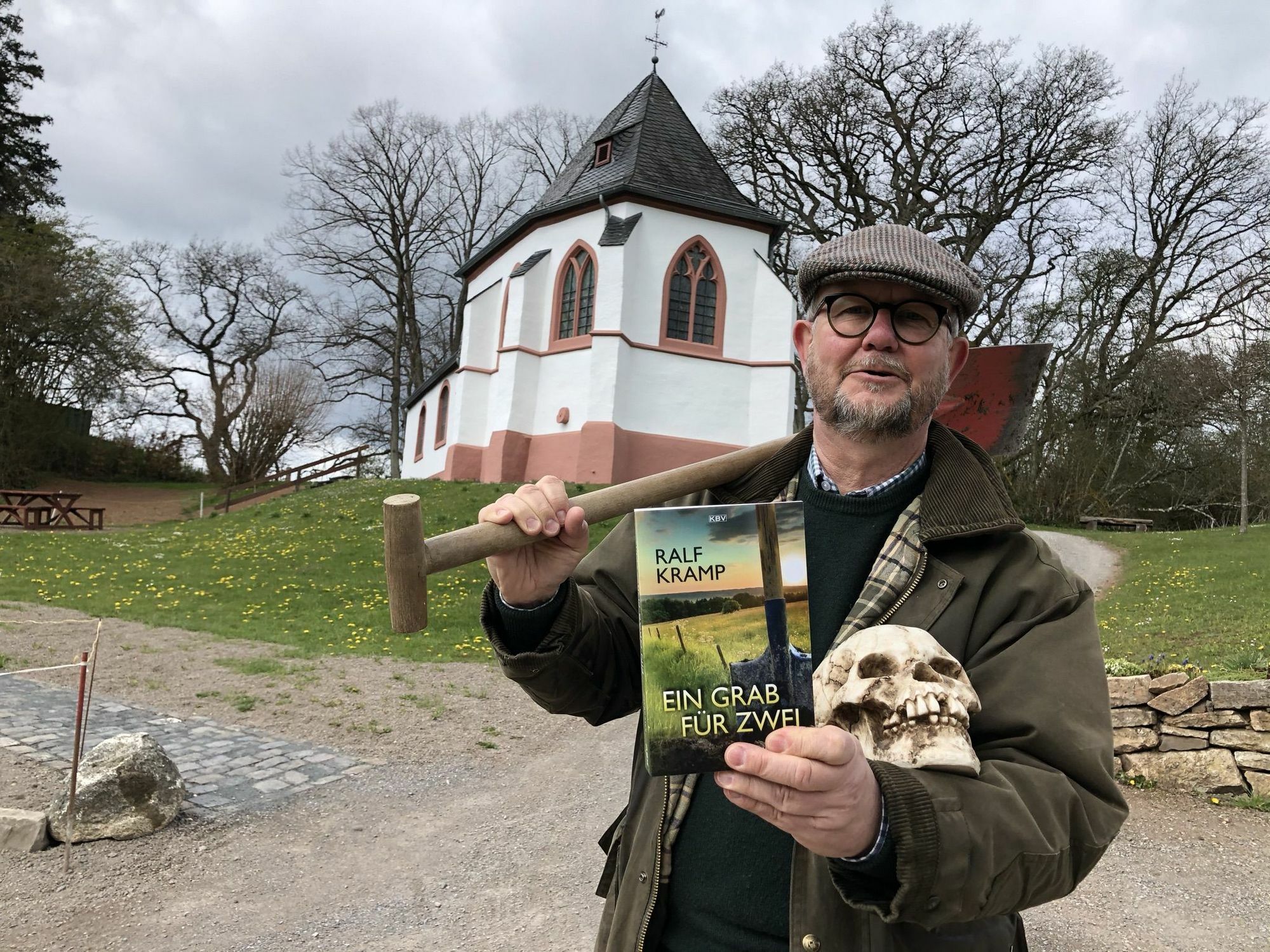 Diese Fiktion erinnert sehr stark an die Vorkommnisse auf dem Mechernicher Friedhof, wo tatsächlich unerwartet eine Leiche auftauchte - nachdem der Roman geschrieben war. »Man soll diese kleinen Paralellen nicht überbewerten«, sagt Ralf Kramp bei der Präsentation seines neuen Buches an der Ahekapelle, »aber als Autor schmunzelt man dann doch ein bisschen.«
