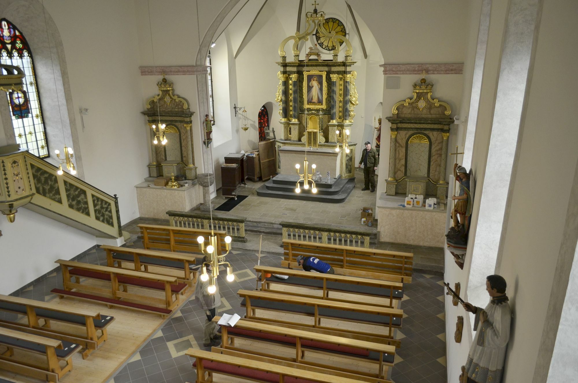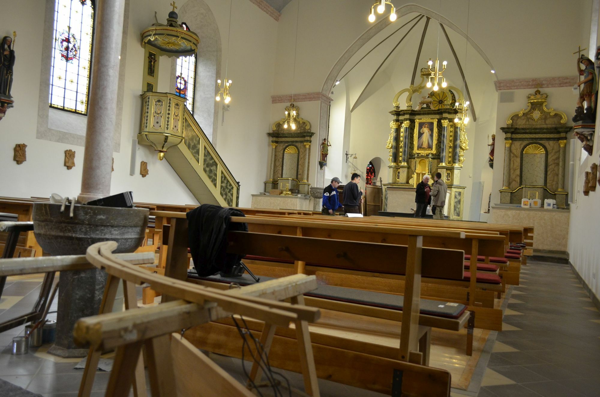 Erfreulich war, dass man bei den Arbeiten auf Teile des alten Kirchenbodens stieß. »Es handelt sich um Platten, die aus dem alten Pescher Steinbruch stammen und von den Vorfahren in mühevoller Handarbeit gebrochen wurden«, so Joachim Schmitz. Diesen alten Boden hat man im Altarbereich wieder neu verlegt. Zudem finden sich einzelne Platten im neuen Mittelgang wieder. Marode war auch die alte Elektroinstallation. Dort wurden sechs Kilometer Kabel verlegt und die Technik auf neuesten Stand gebracht. Der Dachstuhl wurde vom Holzwurm befreit und auch die durchhängende Decke wieder gerichtet. »Die besteht«, so Schmitz, »aus Lehm und muss entsprechend feucht gehalten werden.« Also wurde dafür eine automatische Lüftung eingebaut. Insgesamt schätzt Joachim Schmitz die Gesamtkosten der Sanierung auf runde 160.000 Euro. Stolze 40.000 Euro wurden davon von zahlreichen freiwilligen Helfern in Eigenleistung erbracht. »In den zwei Jahren sind rund 14.000 Stunden von ehrenamtlichen Helfern geleistet worden«, hat Schmitz ausgerechnet.
