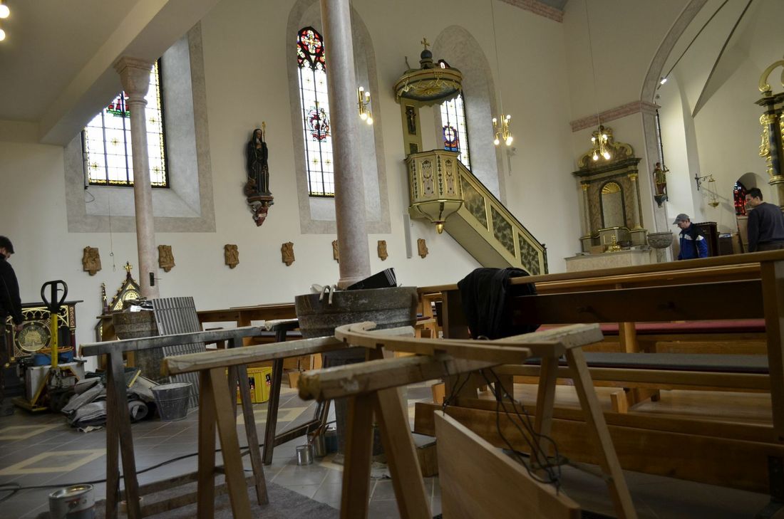 Zu diesem Zeitpunkt ahnte aber noch keiner der viele freiwilligen Helfer, wie viele - oft unliebsame Überraschungen - der 1846 erbaute neugotische Kirchenraum noch zu bieten hatte. Die Liste der auftretenden Mängel, die Joachim Schmitz aufzählt, ist lang. So war schon vor der Sanierung aufgefallen, dass sich einige Platten des Kirchenbodens angehoben hatten. Beim Aufnehmen der Fliesen fand man die Ursache in Gestalt einer mächtigen Kastanienwurzel. Folge: Die Wurzel wurde gekappt, der alte Aufbau des Fußbodens durch eine Betondecke ersetzt.