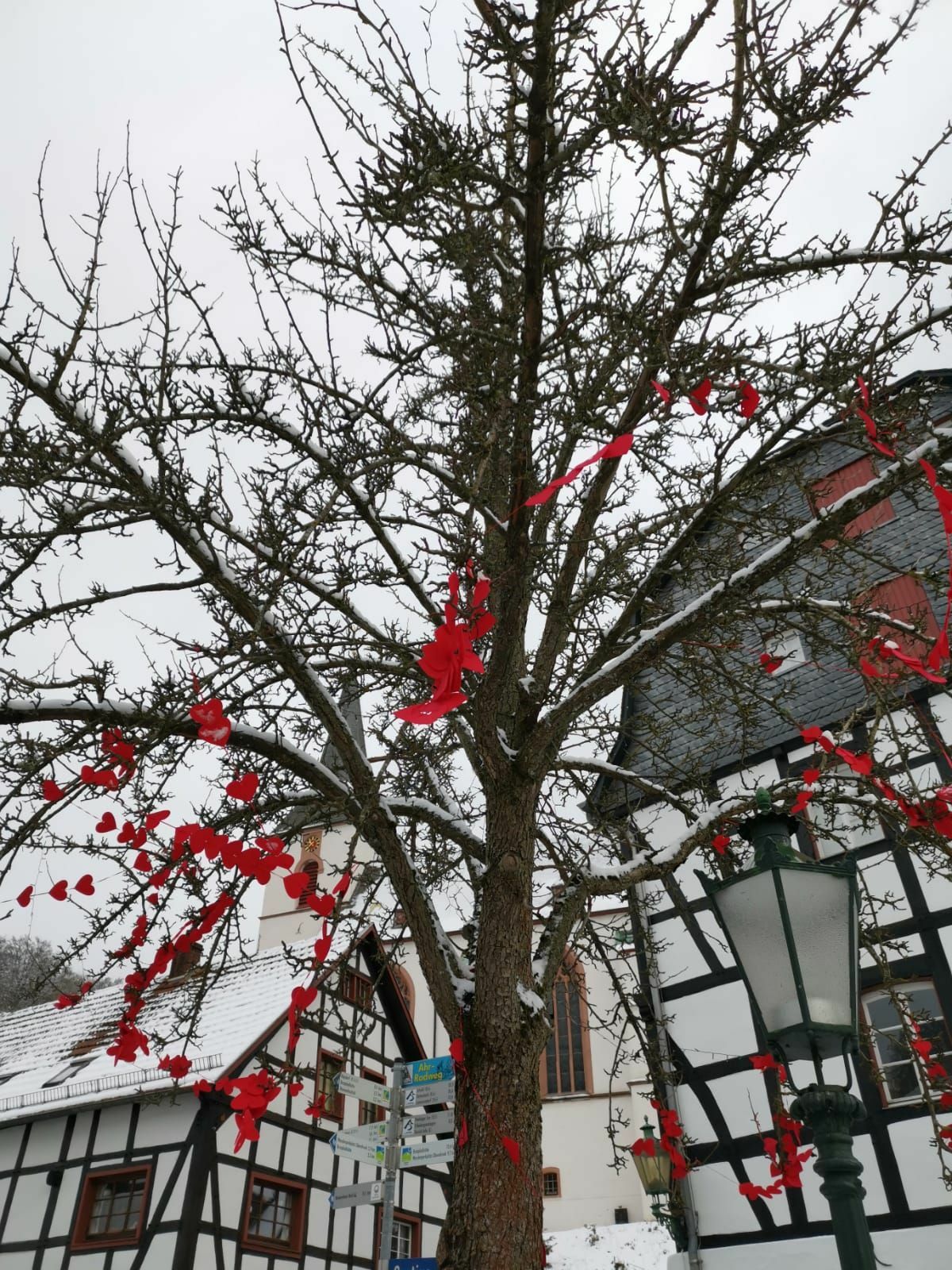 Im Winter war der Wunschbaum mit roten Herzen geschmückt. Foto: Privat