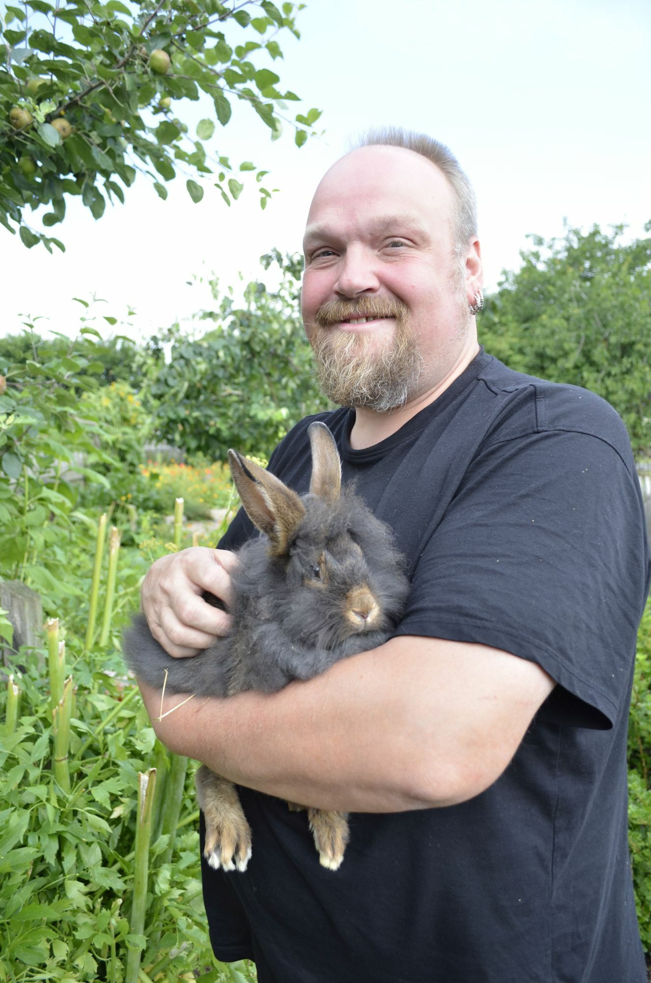 Arnim Pietralla mit einem belgischen Bartkaninchen.