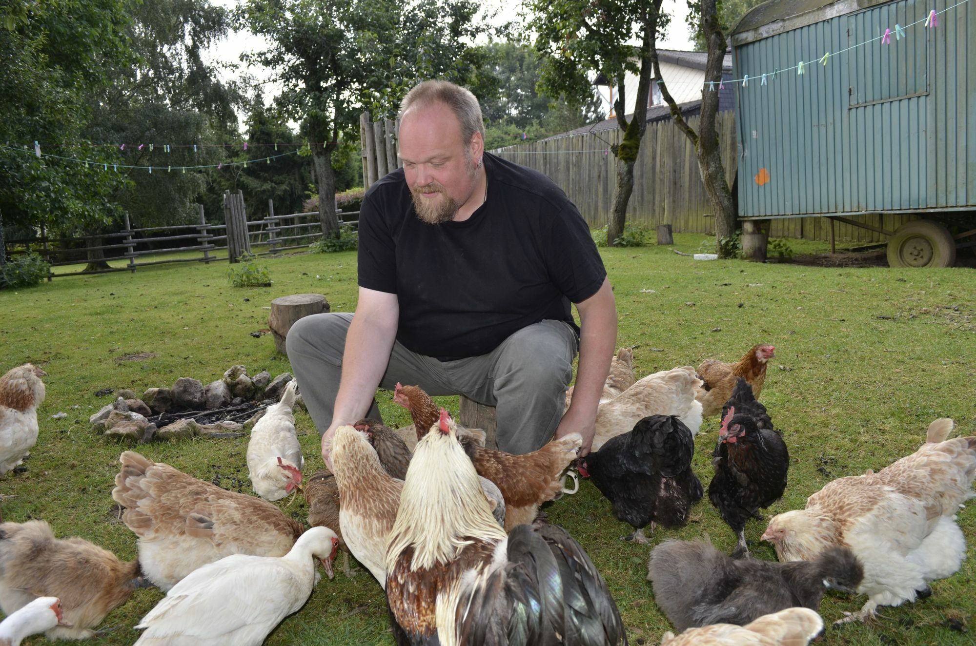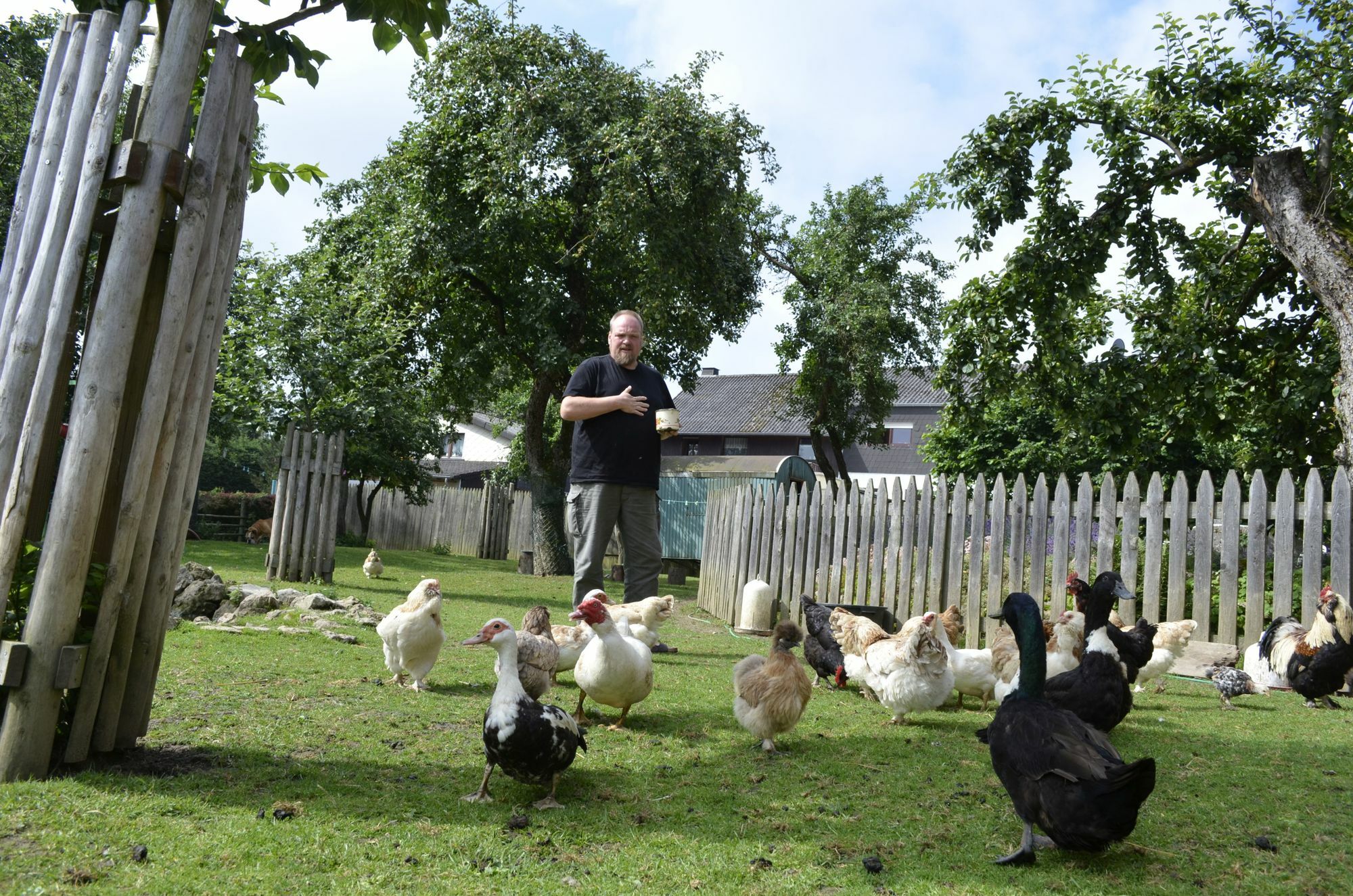 Und das Federvieh frisst seinem Halter aus der Hand.