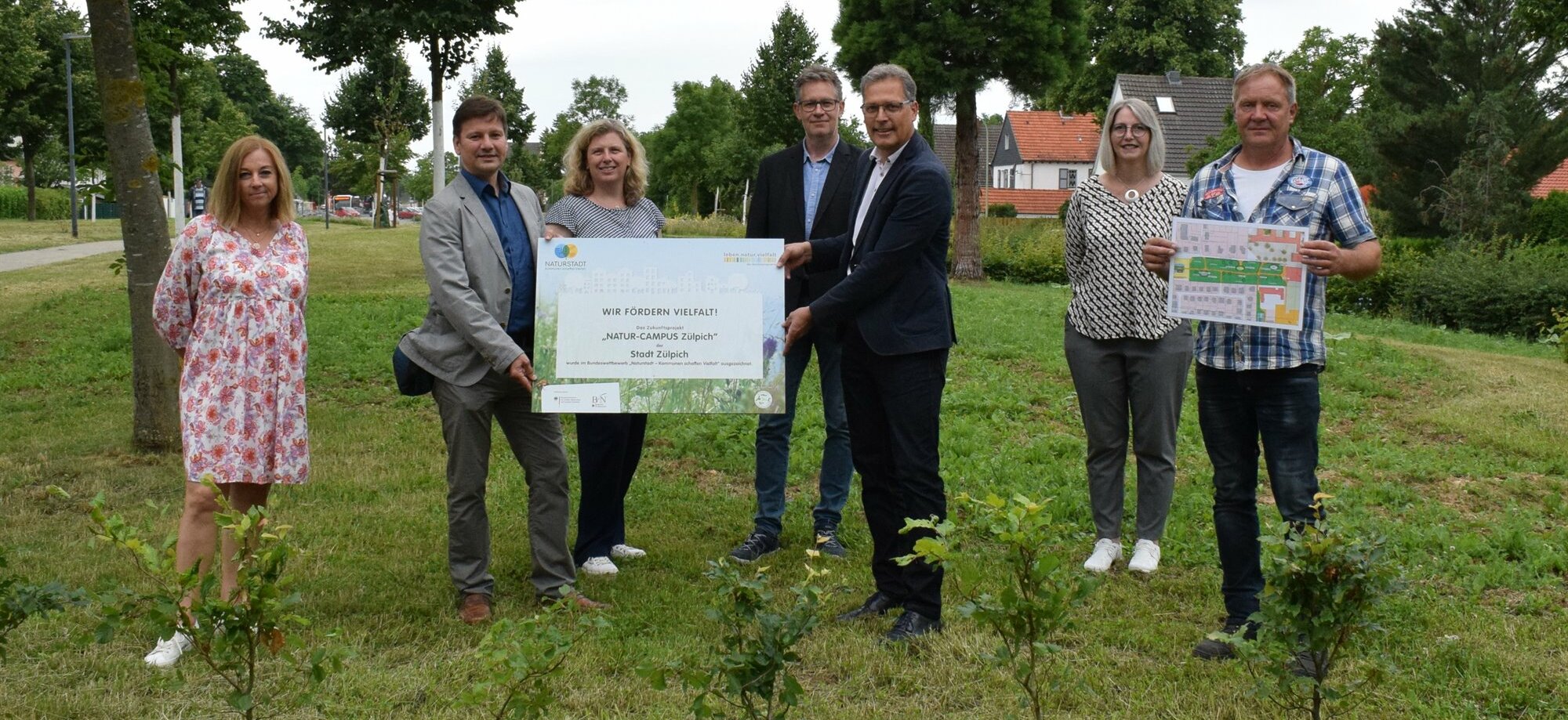 Konkret war die Stadt Zülpich für das Projekt »Natur-Campus« bedacht worden. Mit dem Preisgeld in Höhe von 25.000 Euro konnte die Idee, den Grünzug zwischen Schulcampus und Busbahnhof am Adenauerplatz ökologisch aufzuwerten und in ein artenreiches Areal umzuwandeln, mittlerweile weitgehend umgesetzt werden. Dort, wo es bislang nur Rasenflächen gab, wurde unter der Federführung von Projektleiter Norbert Kloten von der Tiefbauabteilung der Stadt Zülpich durch die Anlage von Blühwiesen, Heckenanpflanzungen sowie durch Sand-, Stein- und Totholzschüttungen neuer Lebensraum für Insekten geschaffen.
