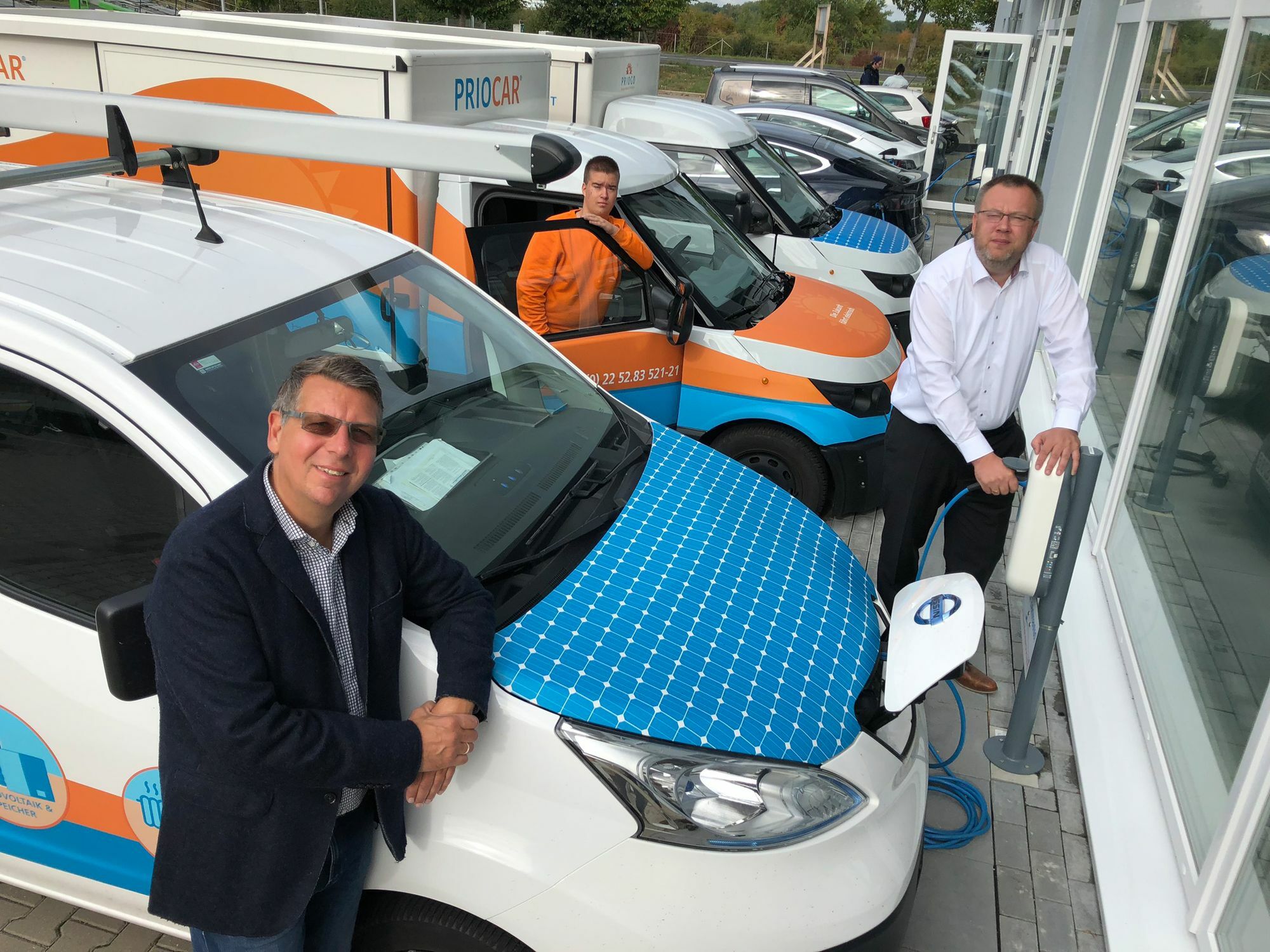 Daher kam das Unternehmen auf die Idee, diese Kosten auf nahezu null zu setzen. Das geht so: Die PRIOGO AG stellt den Bewerbern nach der Probezeit insgesamt drei E-Autos zur Verfügung, die mit dem Strom kostenlos betankt werden, der auf dem Dach des Unternehmens mit Sonnenenergie produziert wird. Da die Besteuerung bei den Elektrofahrzeugen wesentlich günstiger als bei herkömmlichen Autos ist, »können die Fahrzeuge für 30 bis 40 Euro netto im Monat auch noch privat genutzt werden«, so David Muggli. Wichtig zu wissen: Für Gewerbetreibende/Selbständige gibt es insgesamt 8.000 Euro Förderung für Elektroautos. »Das Angebot hat anscheinend überzeugt«, berichtet Dieter Krämer, »denn auf die bundesweite Anzeige meldeten sich zahlreiche Bewerber mit abgeschlossenem Studium.« Folge: Zurzeit arbeiten drei Trainees im Unternehmen, die aus Köln, Hamburg und dem Westerwald stammen.