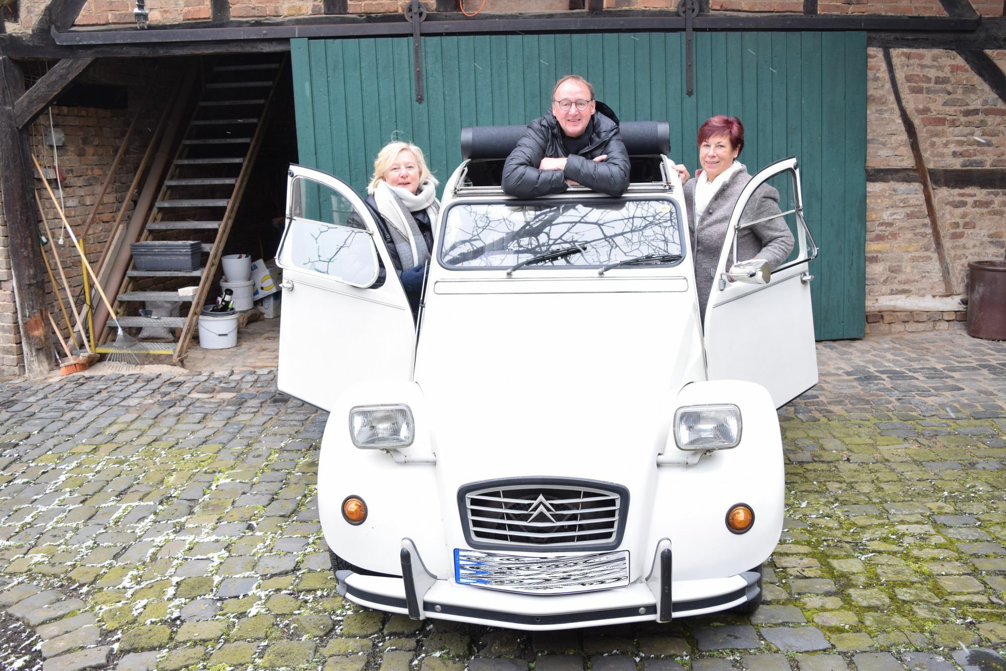 Denn so häufig wie früher ist der 27 PS-starke Oldtimer, Baujahr `86, nicht mehr auf den Straßen im Kreis Euskirchen zu sehen. Von November bis einschließlich März steht der »Döschewo« (2CV), bei einer Nachbarin in der Scheune. »Früher war sie Gebrauchsgegenstand, heute führen wir sie nur noch bei schönem Wetter aus oder wenn wir entschleunigen wollen«, so Enten-Mutti Christine Hertel.