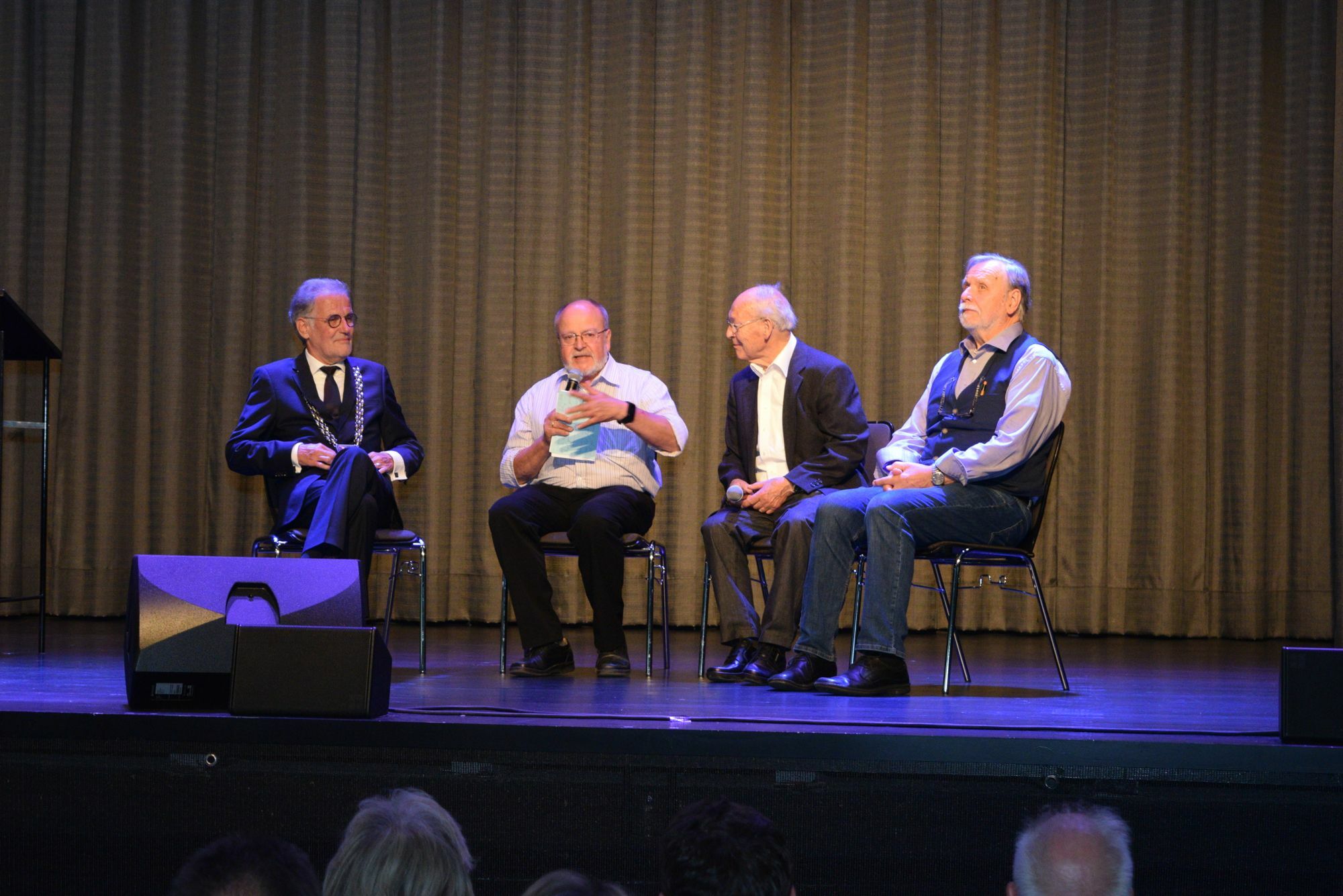 Grußworte richteten auch die Stadtoberhäupter der Partnerstädte, Diane Taylor, Bürgermeisterin von Basingstoke and Deane und Boris Ravignon, Bürgermeister von Charleville-Mézières an die Anwesenden. Im Anschluss moderierte Manfred Lang eine lockere Gesprächsrunde, an der Dr. Uwe Friedl, Euskirchens Ehrenbürger Dr. Theo Wattler und Hermann-Josef Kesternich teilnahmen. Als Zeitzeugen wussten Wattler und Kersternich die eine oder andere Anekdote aus der Zeit der Gebietsreform zu berichten.