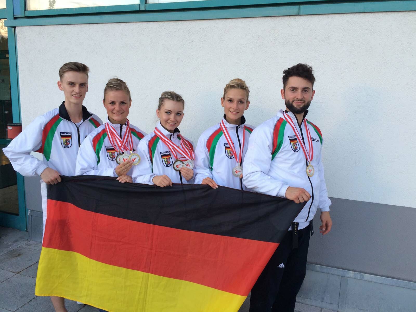 Das Fünfer-Team um Jessica Rau und Triumf Beha aus Mechernich konnte sich mit einer neuen Choreographie in der Klasse Freestyle Team gegen die Ukraine, die TUBW und Croatien durchsetzen und holte Gold.