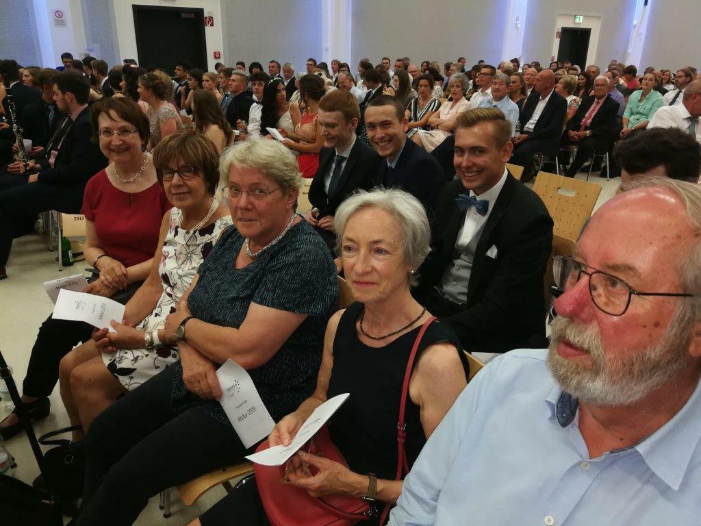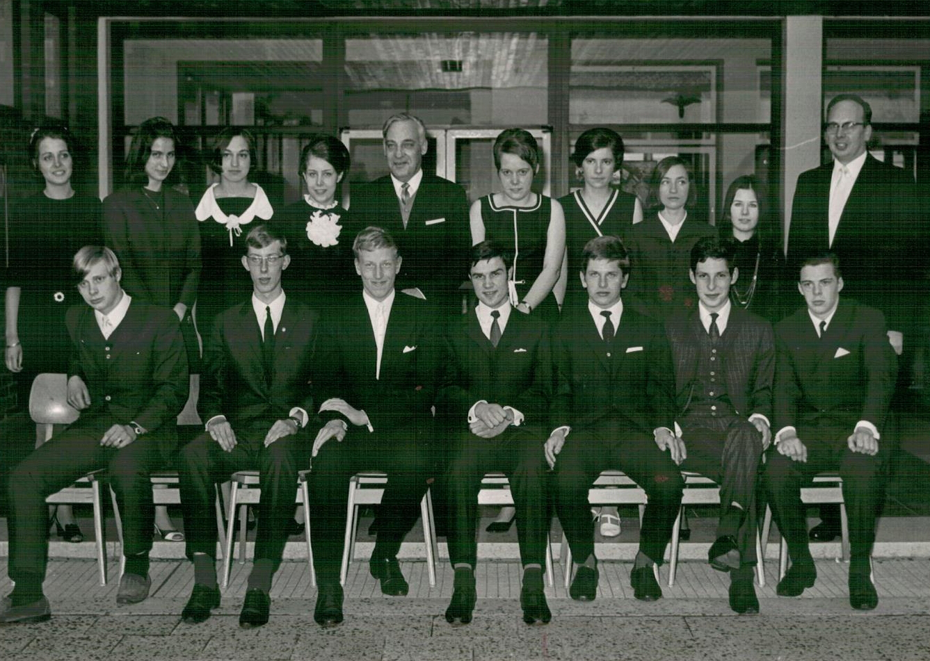 Auch zum eigentlichen Festakt im Forum waren die Jubilare eingeladen und freuten sich mit den 63 jungen Frauen und Männern, die ihre Reifezeugnisse ausgehändigt bekamen. Ein Programmpunkt war eine Festrede zum Goldjubiläum in Form eines Zwiegespräches zwischen Studiendirektor a.D. Hans-Helmut Wiskirchen (dem ehemaligen Klassenlehrer) und einem der Jubilare, dem stellvertretenden Schulleiter Studiendirektor a.D. Helmut Dewitt.