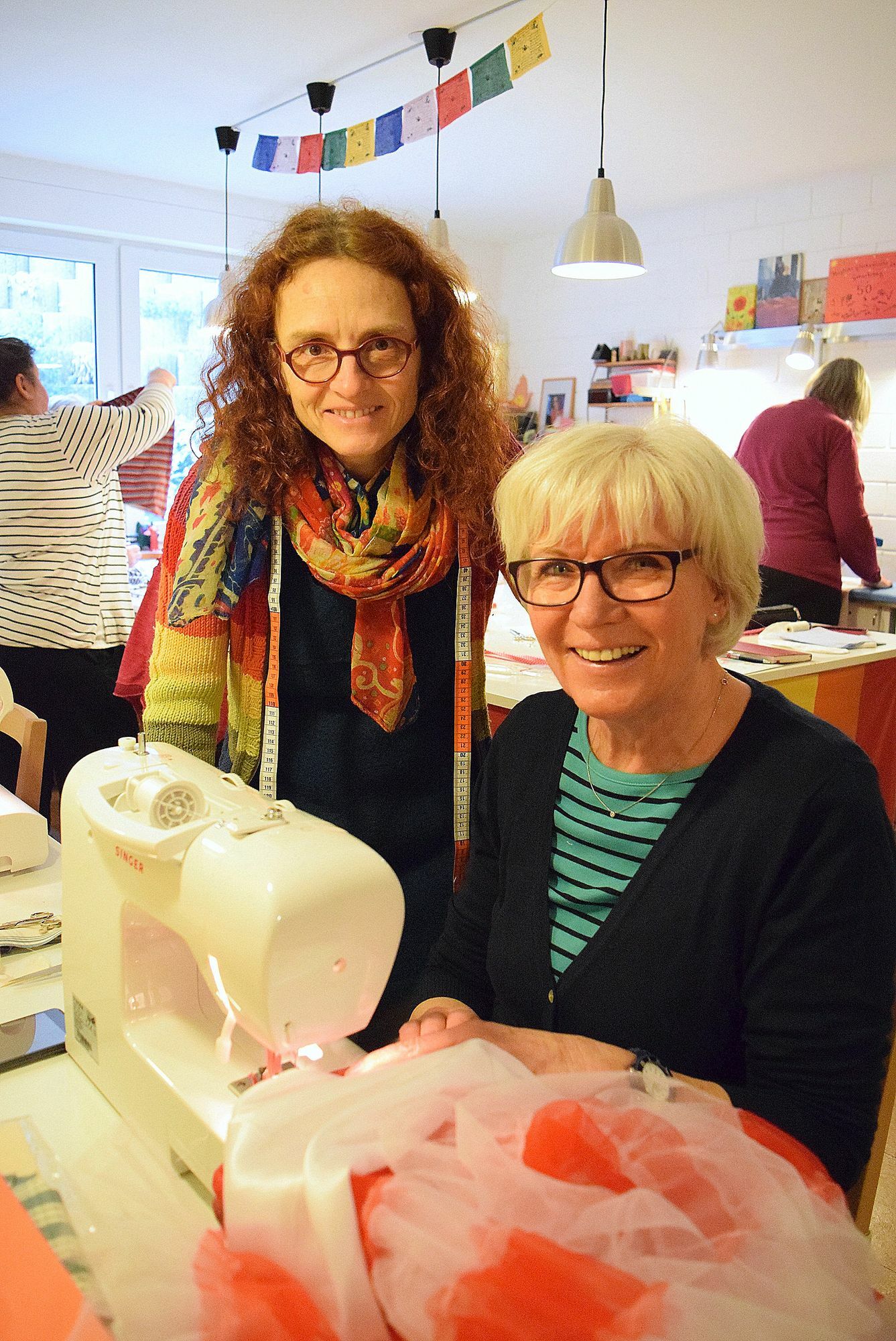 »Beim Nähen braucht man sehr viel Geduld«, stellt Teilnehmerin Gabi Schumacher nebenbei fest. Die Nähanfängerin hat sich an diesem Morgen vorgenommen, eine Schürze a la Pipi Langstrumpf zu nähen: »Zuhause nimmt man sich oft nicht die Zeit, sich mit so einem Projekt zu beschäftigen«. Vor allem als Anfängerin sei es ihr zudem wichtig, eine Ansprechpartnerin bei Fragen zu haben. »Manchmal hat man auch einfach einen Knoten im Kopf und weiß nicht weiter. Der Austausch in der Gruppe tut den Teilnehmerinnen gut«, ergänzt Regula Zell.