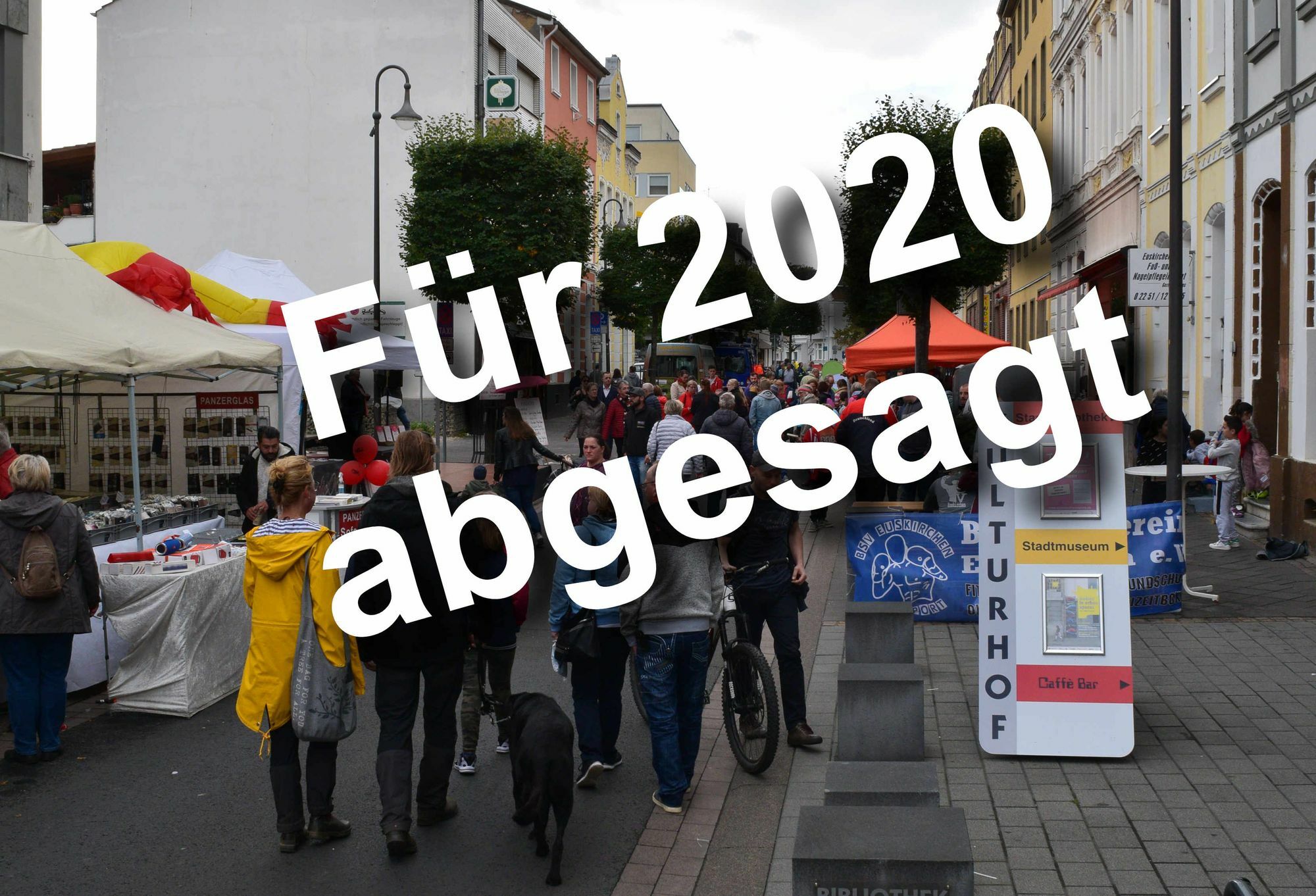 Gemäß der aktuellen Corona-Schutzverordnung vom 7. Juli 2020 bleiben Veranstaltungen in dieser Form mindestens bis zum 31. Oktober 2020 untersagt. Stattdessen plant z.eu.s für das Wochenende einen Herbstmarkt in der Innenstadt. Der für den 27. September beantragte verkaufsoffene Sonntag ist weiterhin geplant.