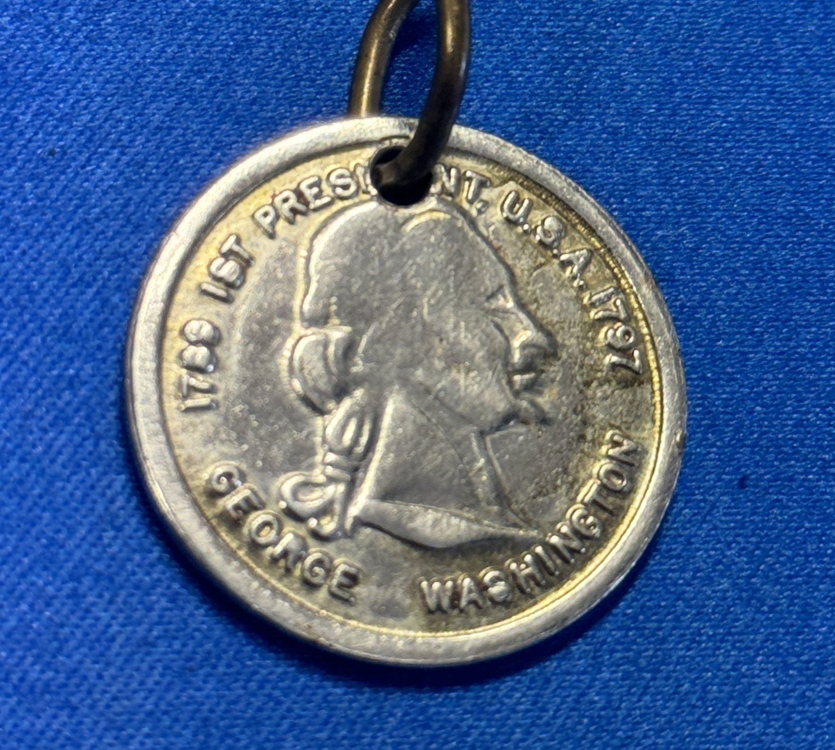 eine Silbermünze als Anhänger mit der Prägung: George Washington First President USA 1797;