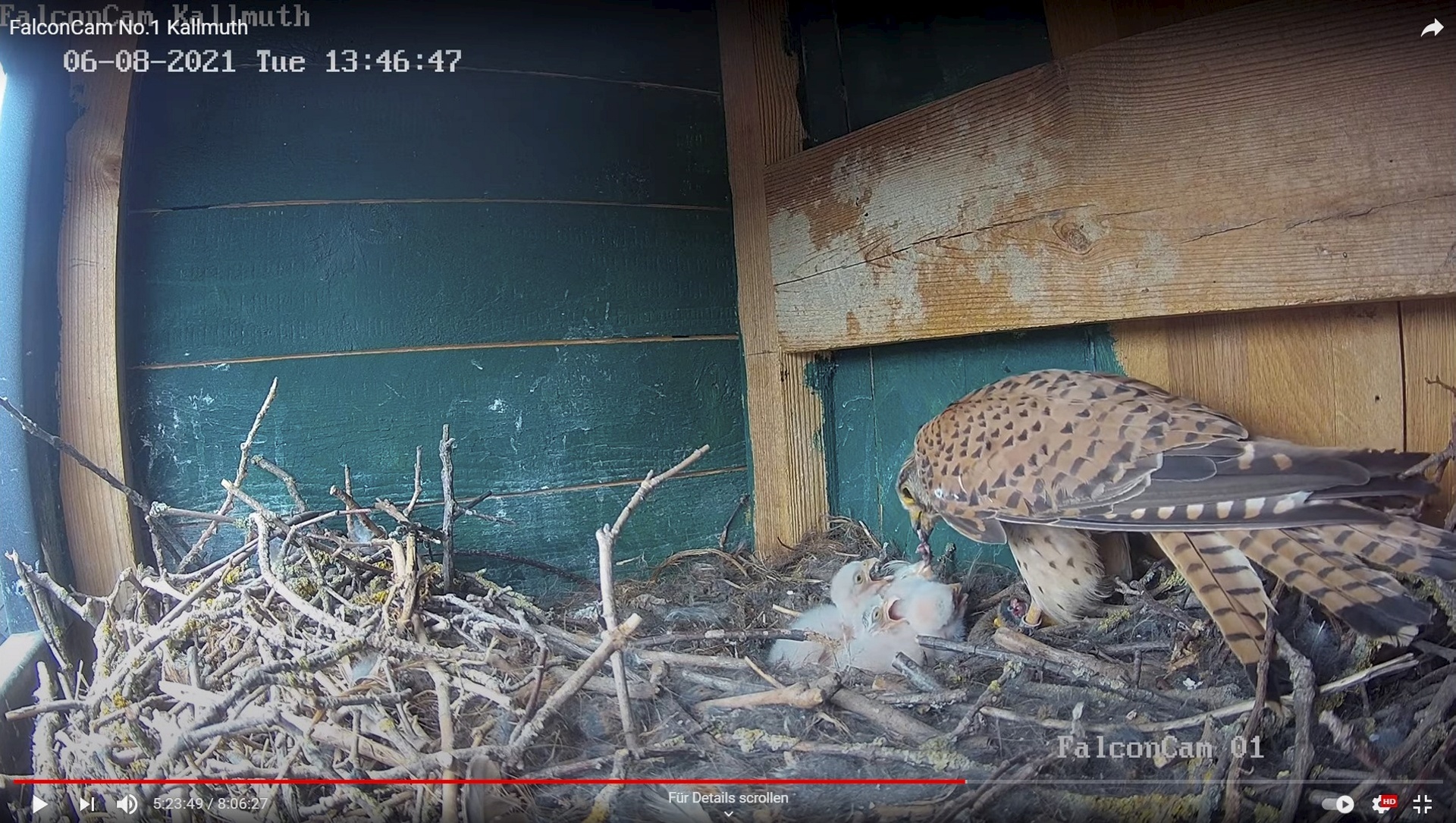 Der Stream „FalconCam Kallmuth“ ist zu finden unter www.youtube.com/channel/UCoQ9UOfD1G6Kb8DehL0ObdA oder auf https://www.youtube.com/channel/UCoQ9UOfD1G6Kb8DehL0ObdA) Außerdem auch auf www.kallmuth-st-georgsritt.de.