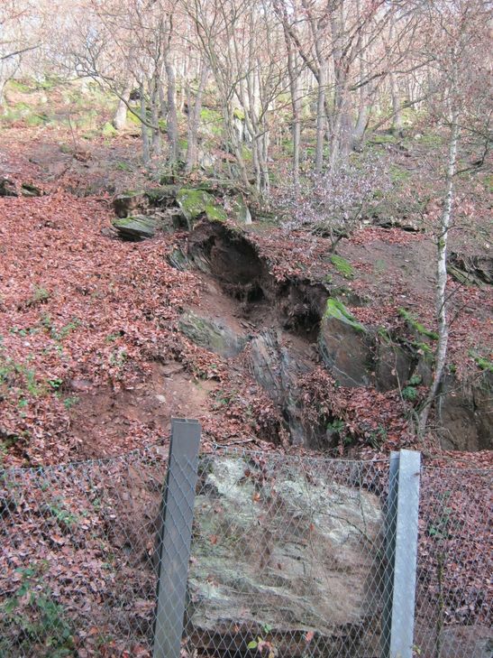 Mit welcher Wucht der Fels ins Tal gerauscht ist, sieht man an den Ausbuchtungen im Zaun. „Der Einschlag muss gewaltig gewesen sein“, sagt Guido Schmitz, zuständiger Abteilungsleiter der Kreisverwaltung Euskirchen. Wegeausbau und Felssicherung entlang der K7 sind in den Jahren 2006 und 2007 ausgeführt worden. An der etwa neun Kilometer langen Passage des Uferweges war es im Vorfeld immer wieder zu Steinschlägen und Felsstürzen gekommen. Zum Schutz von Wanderern und Fahrradfahrern ist daraufhin ein Sicherungskonzept erarbeitet worden.