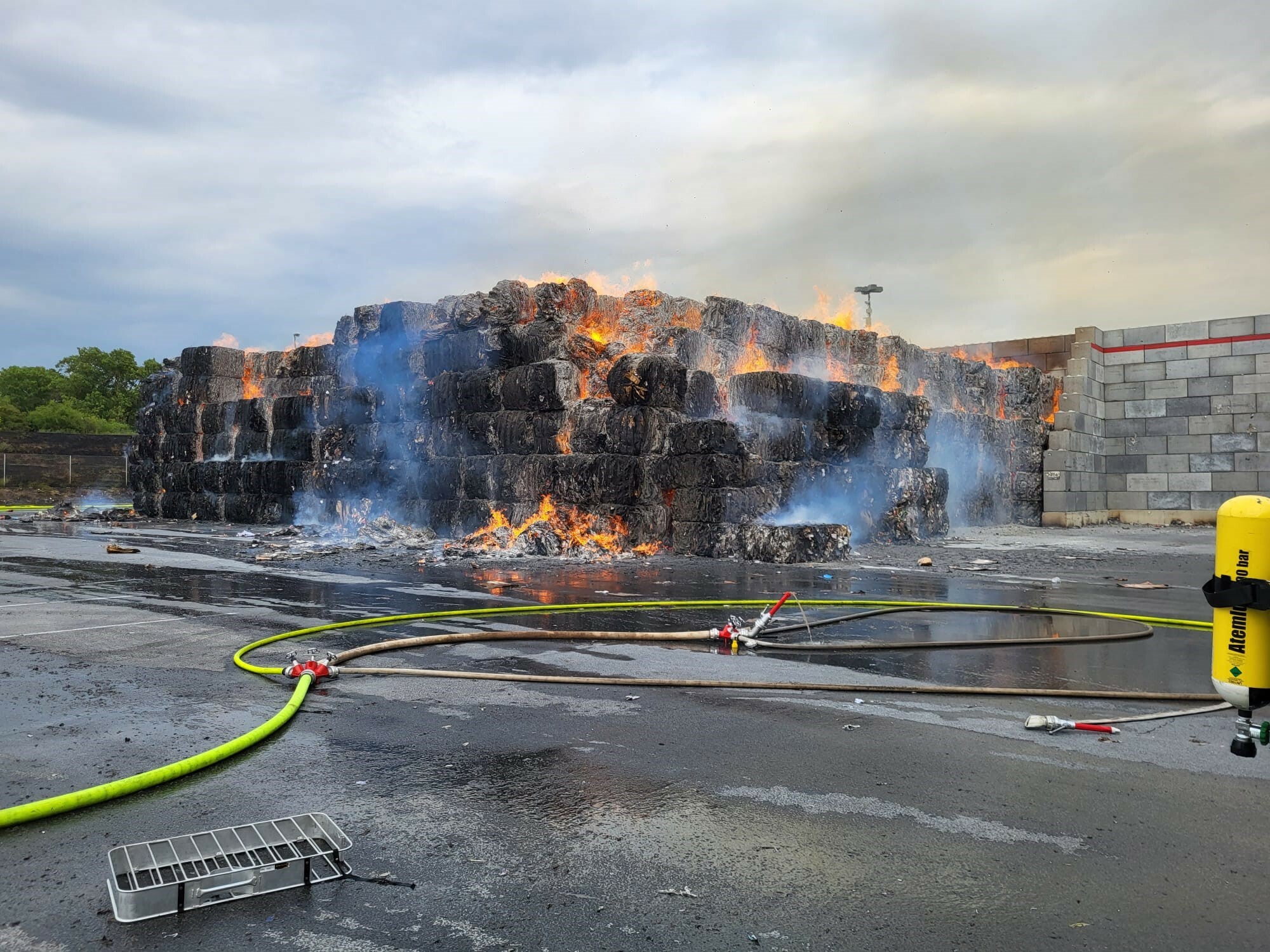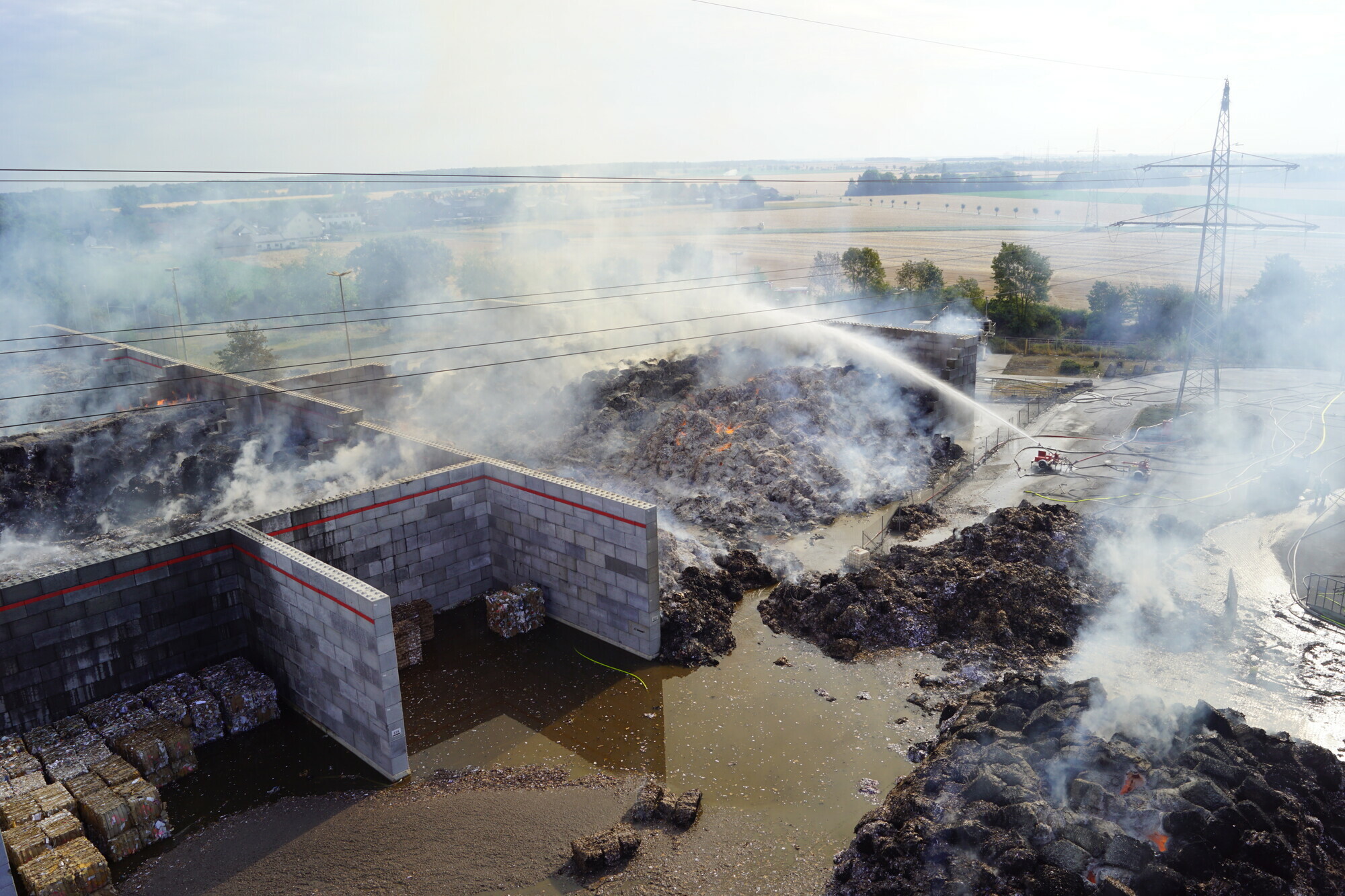Die Schwierigkeit beim Ablöschen von Papierballen sei, dass diese sehr stark gepresst seien und sich die Flammen von außen nach innen fressen. »Um den Ballen vollständig zu löschen, muss man ihn auseinanderziehen«, erklärte Kreisbrandmeister Peter Jonas. Daher beschränke man sich zunächst drauf das Feuer einzudämmen.