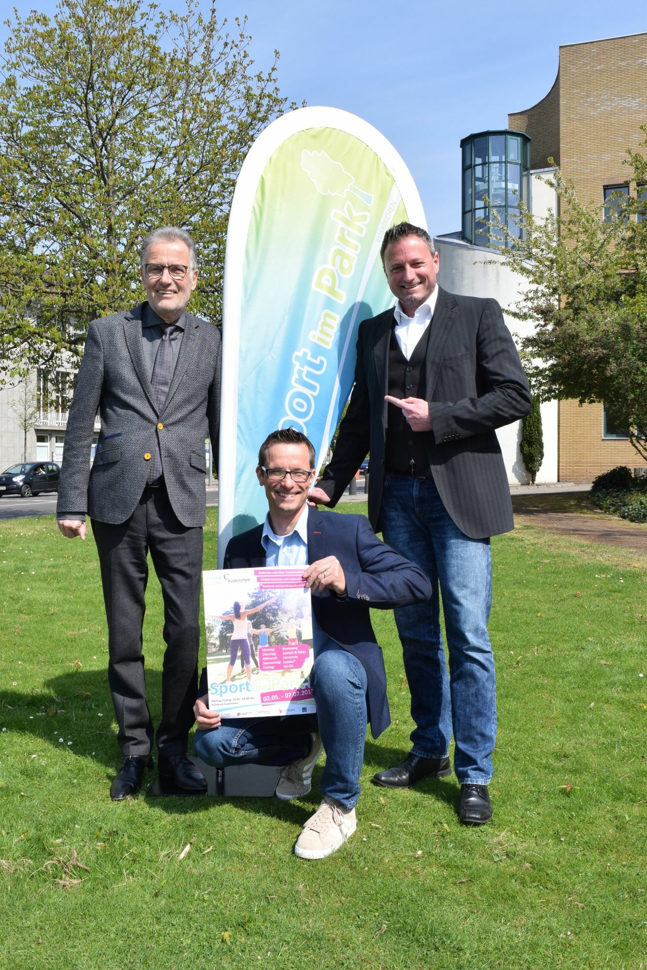 Vom 2. Mai bis zum 7. Juli, jeweils montags bis freitags von 18 bis 19 Uhr, wird »Sport im Park« angeboten. »Selbstverständlich unterstützt die Kreisstadt Eus-kirchen dieses tolle Angebot für die Bürger und stellt daher den Ruhrpark als grüne Übungsfläche in zentraler Lage in der Stadt zur Verfügung«, lobt Euskirchens Bürgermeister Dr. Uwe Friedl das Konzept und ergänzt: »Bewegung ist für die Gesundheit - unabhängig vom Alter - sehr wichtig. Bei diesem Projekt kann man ganz unverbindlich ausprobieren, was einem Spaß macht und gut tut«, so Friedl.