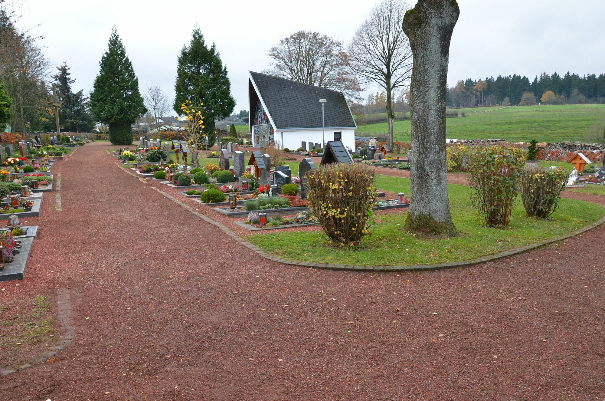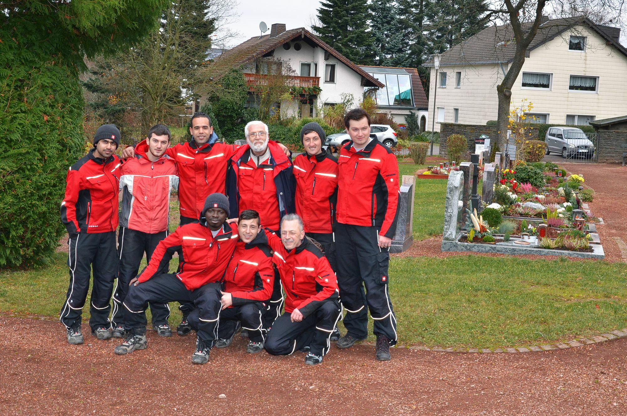 Ihre Integration in die Arbeitswelt soll so auf den Weg gebracht werden. Die ersten Ergebnisse des Projekts können sich sehen lassen. So wurde beispielsweise der Friedhof in Hollerath mittlerweile von den acht Flüchtlingen aus Bangladesch, Syrien, Ghana, Marokko, Albanien und dem Kosovo unter Anleitung von den Caritas-Mitarbeitern Stefan Hiller und Uwe Bergmann auf Vordermann gebracht. „Das Laub lag zum Beispiel haufenweise auf den Wegen herum und die roten Schotterwege waren stark von Moos bewachsen“, berichtet Stefan Hiller. „Das haben wir nun alles wieder hergerichtet, die Flüchtlinge haben tolle Arbeit geleistet.“ Die gesamte Fläche von wurde in einer dreitägigen Aktion komplett von Blättern und Moos befreit. „Die Stellen waren zum Teil so stark vermoost und zugewachsen, dass man die Wege zu den Grabsteinen kaum vom Rasen unterscheiden konnte“, ergänzt Uwe Bergmann. Nun ist alles wieder in einem ordentlichen Zustand und das kommt bei der Eifeler Bevölkerung gut an.“ So kam ein älterer Herr, der gerade mit Grabpflege beschäftigt war, auf die Gruppe zu und bedankte sich herzlich bei den Männern für ihren Einsatz und das sehenswerte Ergebnis. „Wir haben hier wirklich eine gute Erfahrungen mit den Dorfbewohnern gemacht, das motiviert uns sehr, täglich zur Arbeit zu kommen und es gut zu machen“, betont Bobby aus Ghana. Als nächstes nimmt sich die Gruppe den Friedhof nahe der Wildenburg vor.