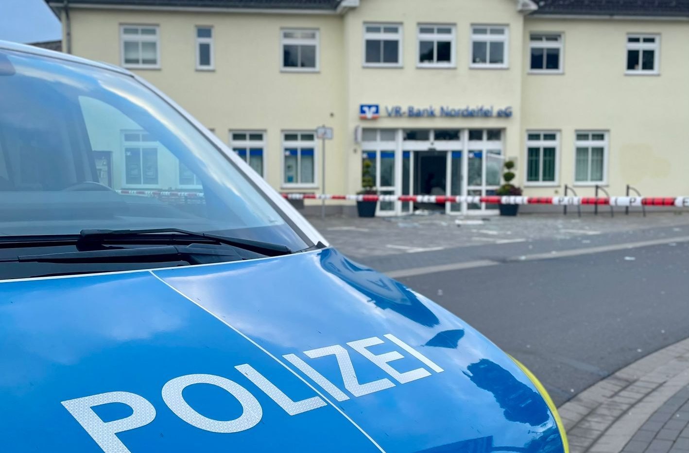 Am frühen Dienstagmorgen, 11. Juni, ist es in Dahlem zu einer Sprengung eines Geldautomaten in der Filiale der VR-Bank Nordeifel gekommen.