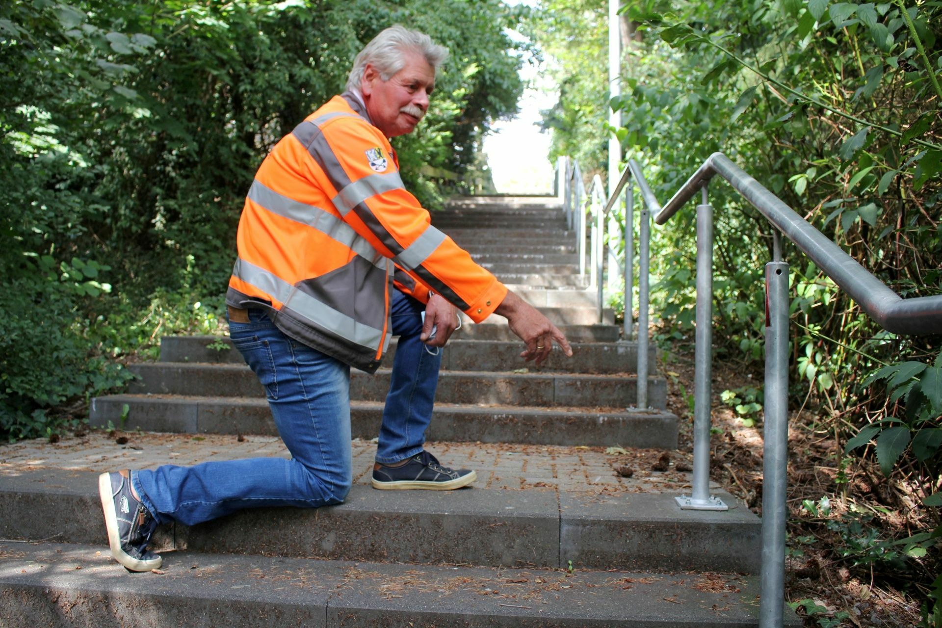 Am Donnerstag, 20. August, hatte ein Bürger sich im Rathaus gemeldet und mitgeteilt, dass an der Heinrich-Sistig-Treppe, die die Aachener Straße mit dem Weißdornweg verbindet, Muttern gelöst wurden. Der Bauhof inspizierte die Treppe daraufhin. Wie Bauhofleiter André Kaudel mitteilt, wurden sämtliche Muttern an den Stahlpfosten des Geländers gelöst. Einige Muttern wurden komplett demontiert und entfernt.