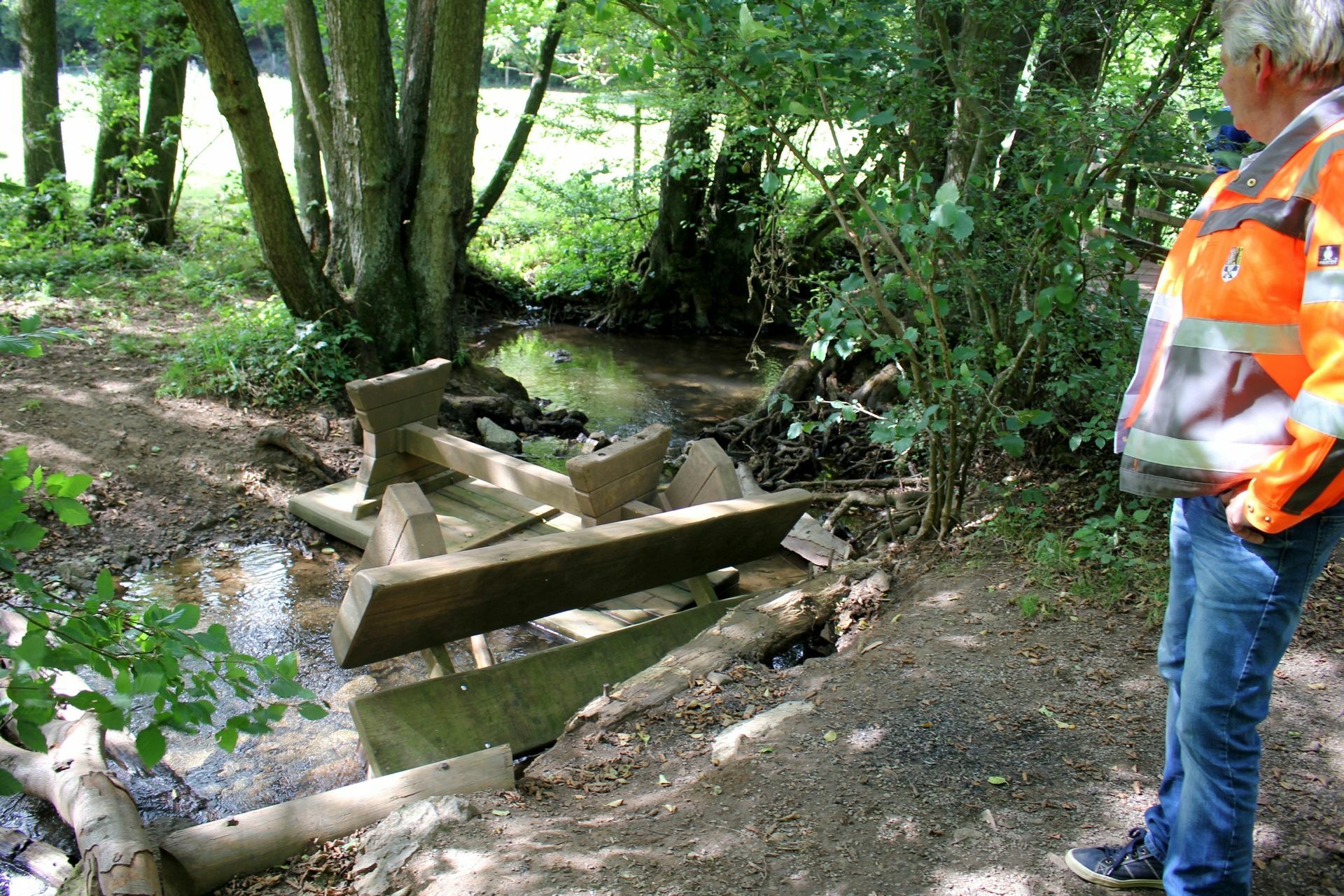 Holztisch in die Urft geworfen