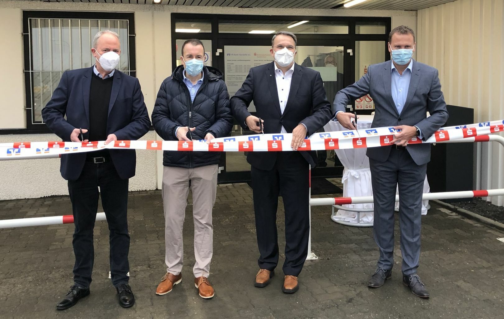 Auf das Wort »gemeinsam« legten sowohl Mark Heiter, Vorstandsvorsitzender der VR-Bank Nordeifel, als auch Udo Becker, Vorstandsvorsitzender der KSK Euskirchen, sehr großen Wert. Er wolle zwar nicht zu pathetisch werden, so Mark Heiter bei der Eröffnung, aber man könne bei der Einrichtung der gemeinsamen Filiale von »einem neuen Zeitalter« sprechen. »Wir haben den Wettbewerbsgedanken ganz weit hinten angestellt«, betonten Udo Becker und Mark Heiter. Stattdessen habe man gemeinsam Verantwortung übernommen, um den Menschen vor Ort nach der Katastrophe schnell und effektiv zu helfen.