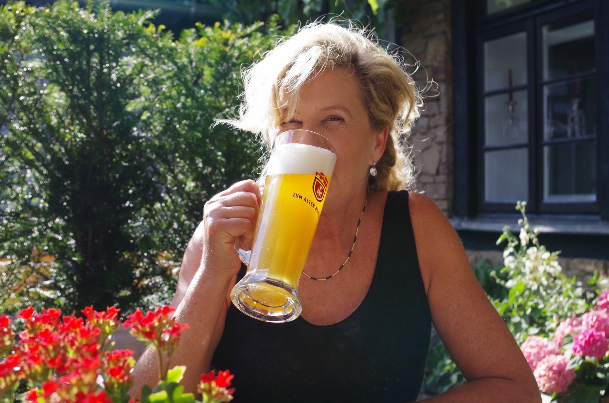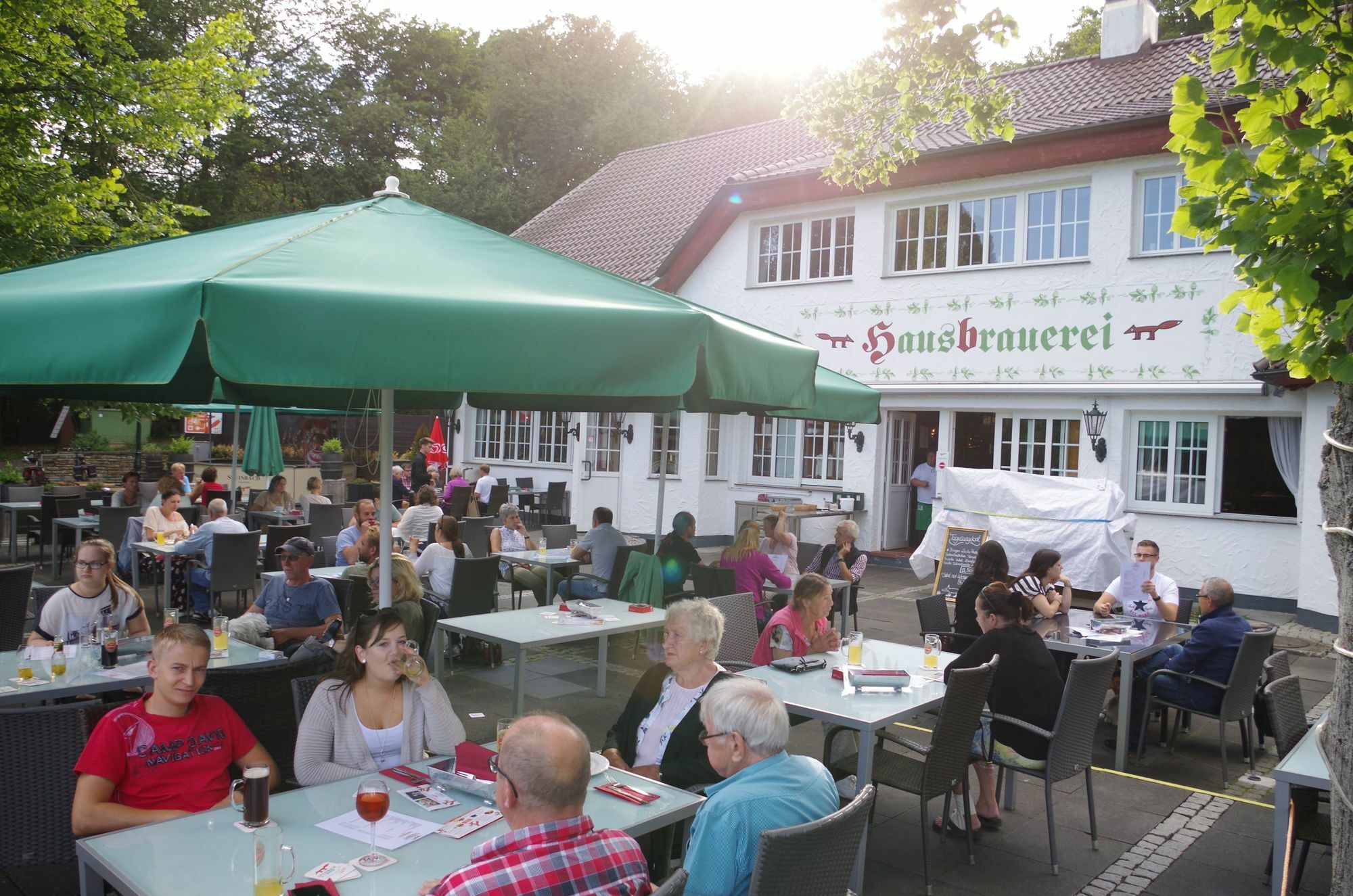 Einen gemütlichen Biergarten bietet auch die Gaststätte „Zum alten Brauhaus“ in Kreuzweingarten. Dort kehren gerne Motorradfahrer und Radfahrer ein. Nach einer aufwändigen Restaurierung es alten Hofes wird dort seit dem vergangenen Herbst wieder gebraut. „Wir haben ein Helles, ein Dunkles und ein Bernsteinweizen“, erklärt Restaurantleiterin Michaela Henker. Alle drei sind obergärig. „Wie Kölsch. Aber wir dürfen es ja nicht Kölsch nennen, weil wir die Spitzen des Doms nicht sehen“, erklärt sie mit Hinweis auf die Regeln der Namensbenennung. Alle drei Sorten sind unfiltriert. „Das Helle ist dem Kölsch sehr nah, es etwas würziger. Das Dunkle ist herber und bei den Männern beliebt. Unser Weizen schmeckt sehr würzig“, charakterisiert sie die Biere. Die Rezepturen aus dem Jahr 1750 überliefert und werden von einem regionalen Braumeister angewendet. Etwa alle drei Wochen setzt er samstags einen neuen Sud ein. Die Gäste sind willkommen, den Vorgang mitzuerleben. „Der Brauvorgang selbst ist die geringste Arbeit“, weiß Michaela Henker: „Das meiste ist Hygiene, Putzen und Laborarbeit.“ Im Biergarten mit 140 Plätzen gibt es das 0,25-Liter-Glas für zwei Euro und das 0,5-Liter-Glas für vier Euro.