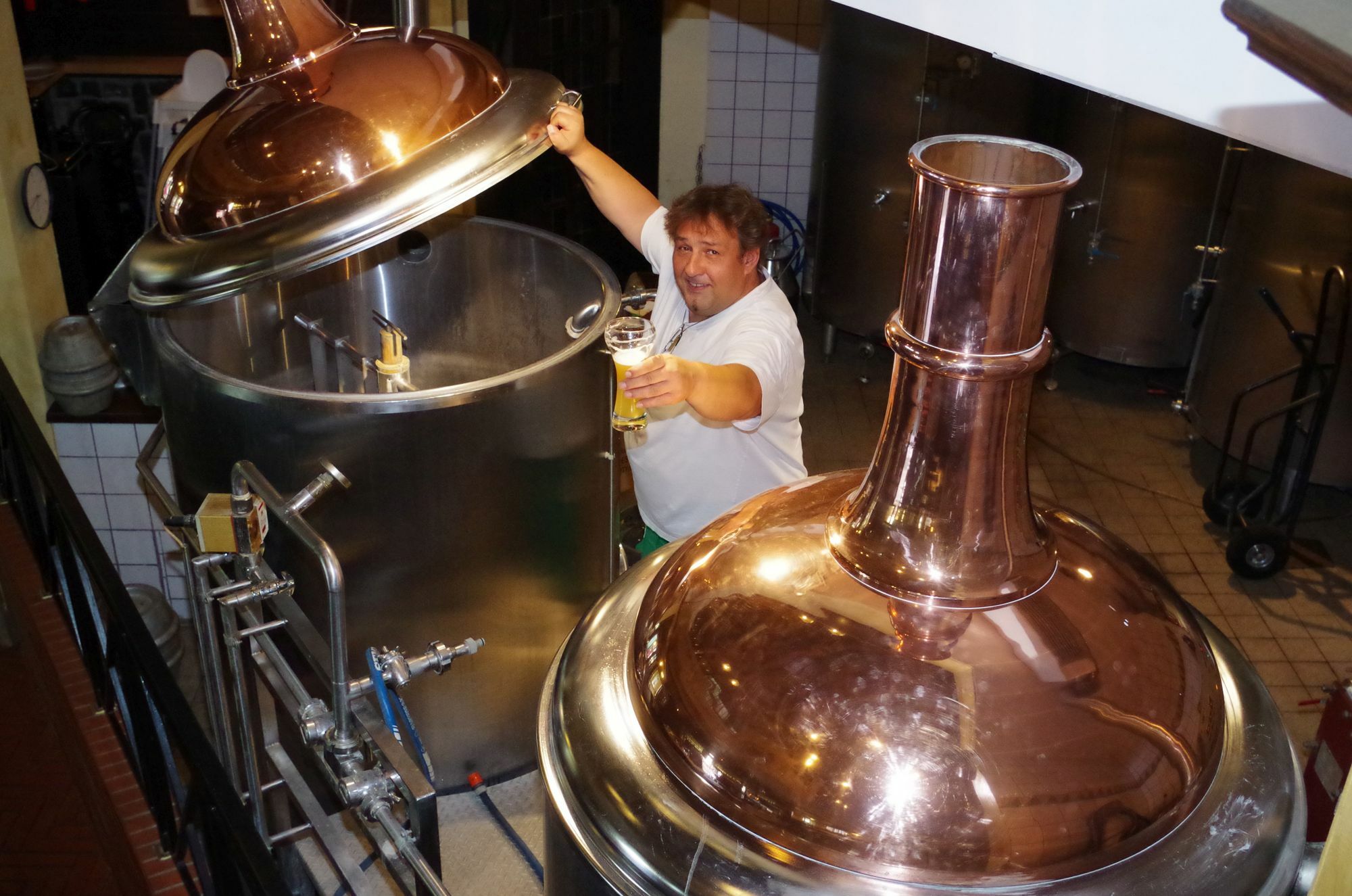 Gersten, Hopfen, Hefe und Wasser – diese Zutaten sind die Grundzutaten für goldenen Gerstensaft. 104,1 Liter Bier mit und ohne Alkohol haben die Deutschen im vergangenen Jahr durchschnittlich pro Kopf getrunken. Ein Großteil des „Hopfen-Smoothies“ stammt aus den großen Brauereien. Aber es gibt auch viele kleine Brauereien, die leckeres Bier produzieren. Seit 1994 wird im Waldgasthaus an der Steinbachtalsperre gebraut. „Je nach Wetter brauen wir 400 bis 600 Liter pro Jahr“, erzählt Brauer Michael Wolf. Die Braugerste lässt das Waldgasthaus in einer Mälzerei extra für seine Produktion rösten. „Unser gängigstes Bier ist das Naturblond. Außerdem stellen wir Steinbach Dunkel – das ist ein Schwarzbier –, ein Hefeweizen und ein Bockbier her“, erzählt Wolf.