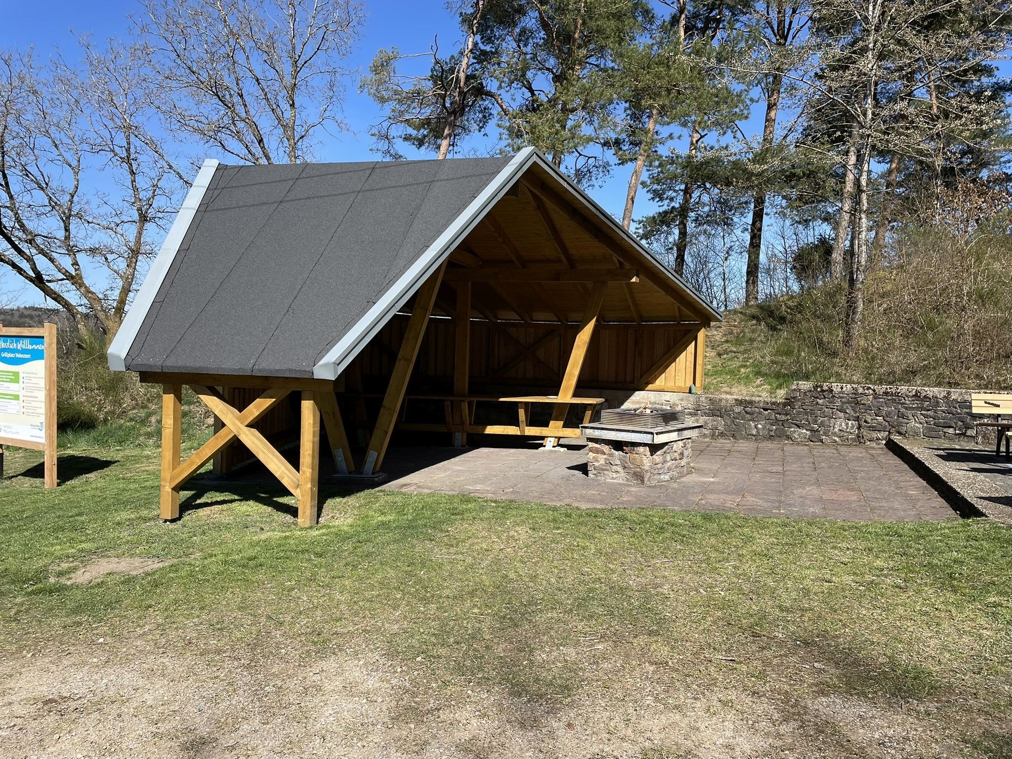Die in die Jahre gekommene Grillhütte am ehemaligen Trimm-Pfad konnte aufgrund einer Förderung für Struktur- und Dorfentwicklung mit Mitteln des Bundes und des Landes NRW komplett erneuert werden.