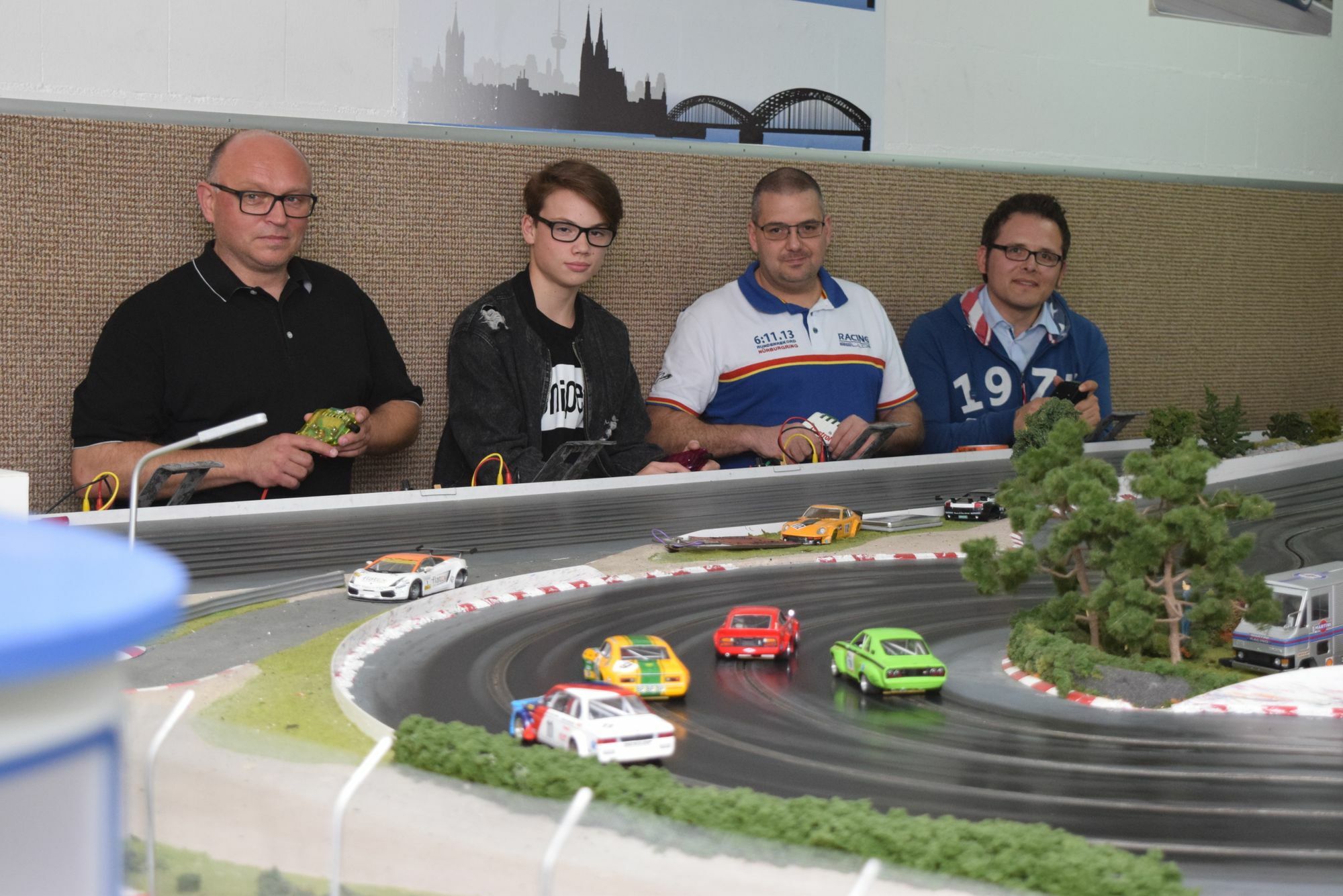 »Wir sind eine Gemeinschaft von großen Jungs, die gerne mit kleinen Autos spielt«, so Marcus Hasse aus Hürth. Das Hobby der Männer nennt sich Slot-Racing. »Slot«, weil die Autorennbahn einen Schlitz hat, durch den das Auto mittels Strom geführt wird - besser bekannt als Carrera-Bahn.