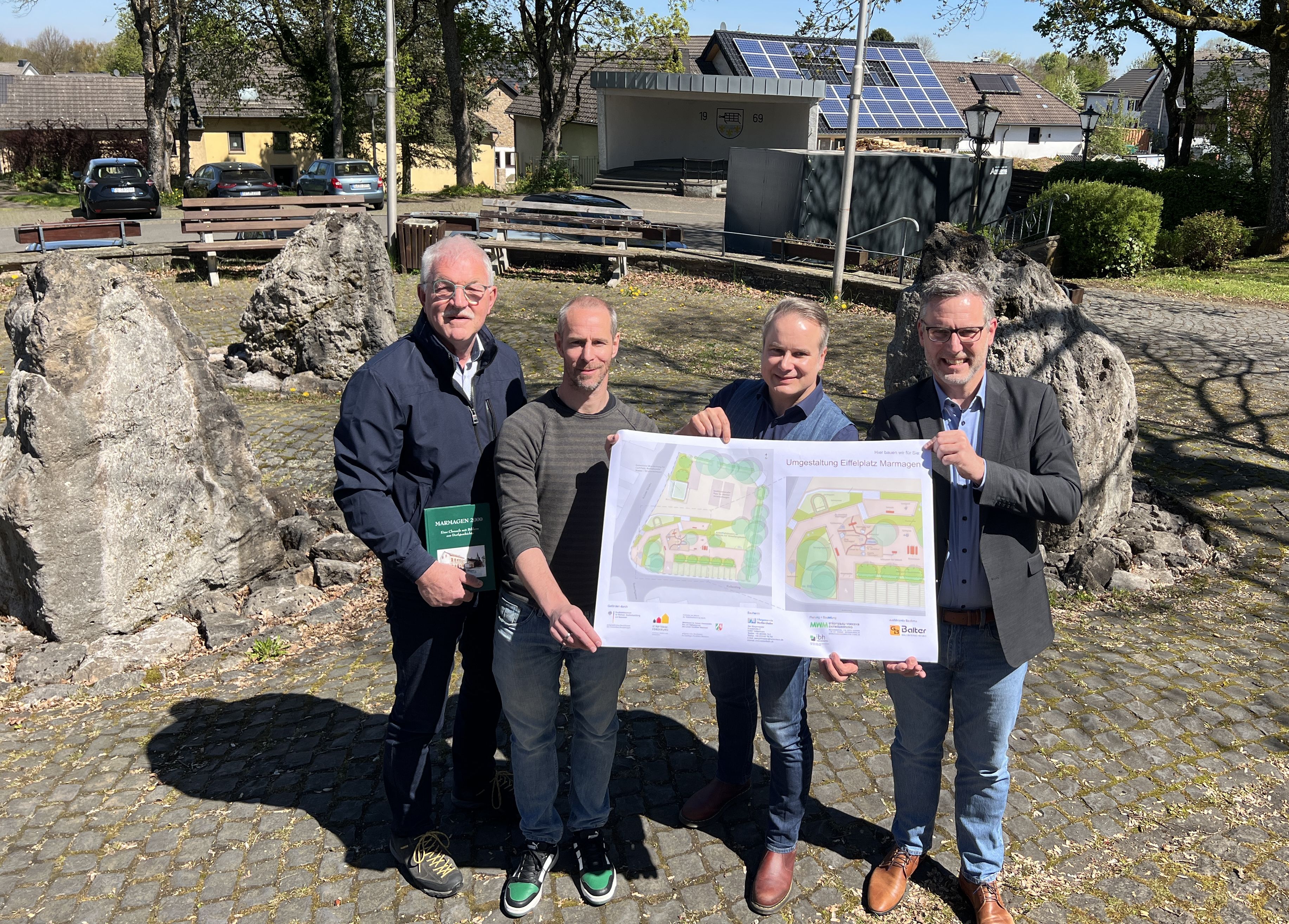 Nettersheims Bürgermeister Norbert Crump erinnerte daran, dass die Grundlage für das Projekt vor 57 Jahren gelegt wurde, als die damalige Gemeinde Marmagen den Bereich entwickelte. Der Name Eiffelplatz – mit zwei »F« – ist eine Hommage an die Vorfahren von Gustave Eiffel, dem Erbauer des Pariser Eiffelturms, die ursprünglich aus dem heutigen Marmagen stammten.