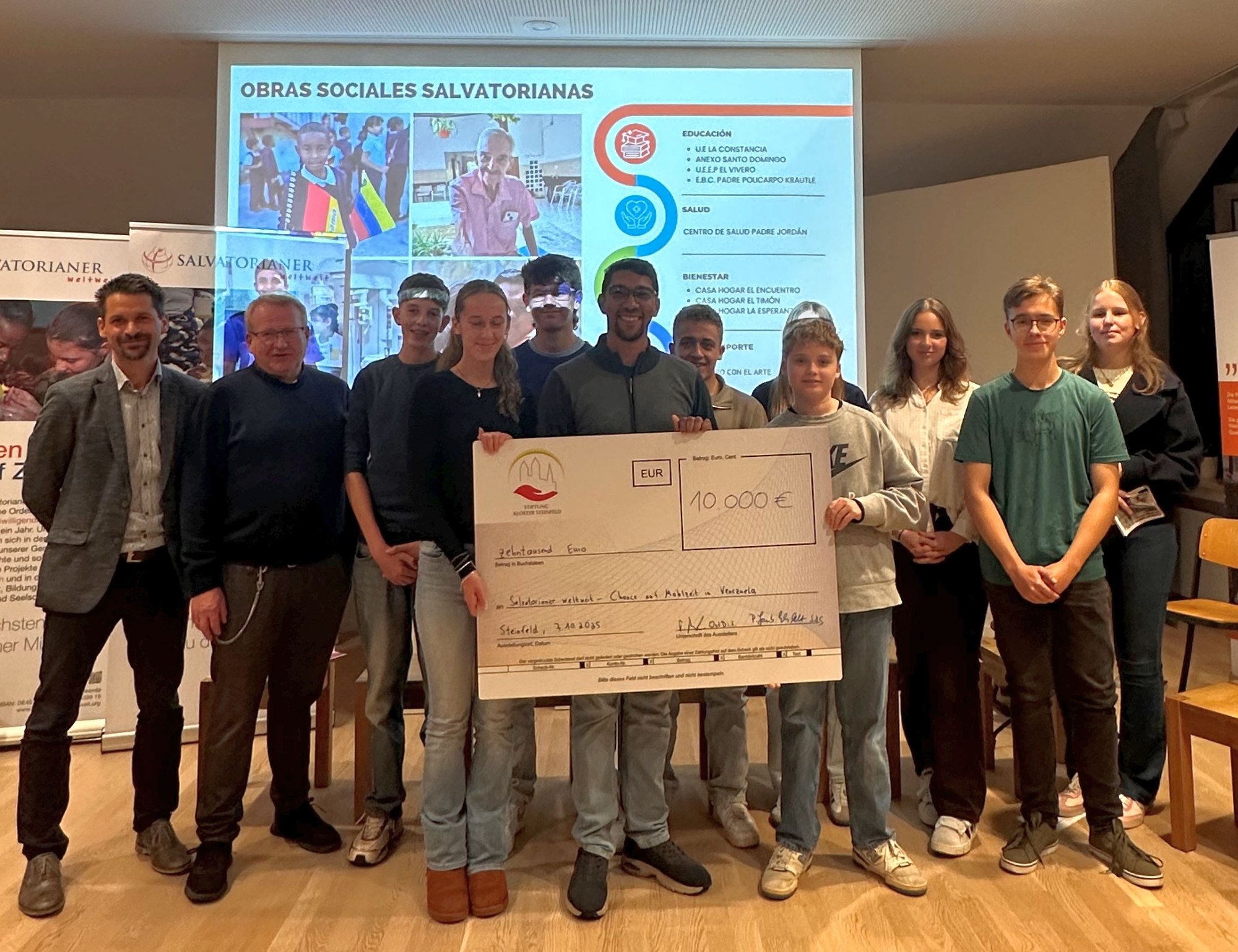 Er wollte sich bei den Steinfeldern für ihre Großzügigkeit bedanken, denn bereits zum zweiten Mal in Folge durfte Schulleiter Thomas Frauenkron eine Spende in Höhe von 10.000 Euro überreichen. Dieses Geld sammeln die Schüler beim alljährlichen Klostermauerlauf am Hermann-Josef-Tag. Damit wird in Venezuela, einem der ärmsten Länder der Welt, die Schulspeisung an den salvatorianischen Schulen finanziert. So erhalten die Kinder dort morgens ein Frühstück – häufig die einzige Mahlzeit des Tages.