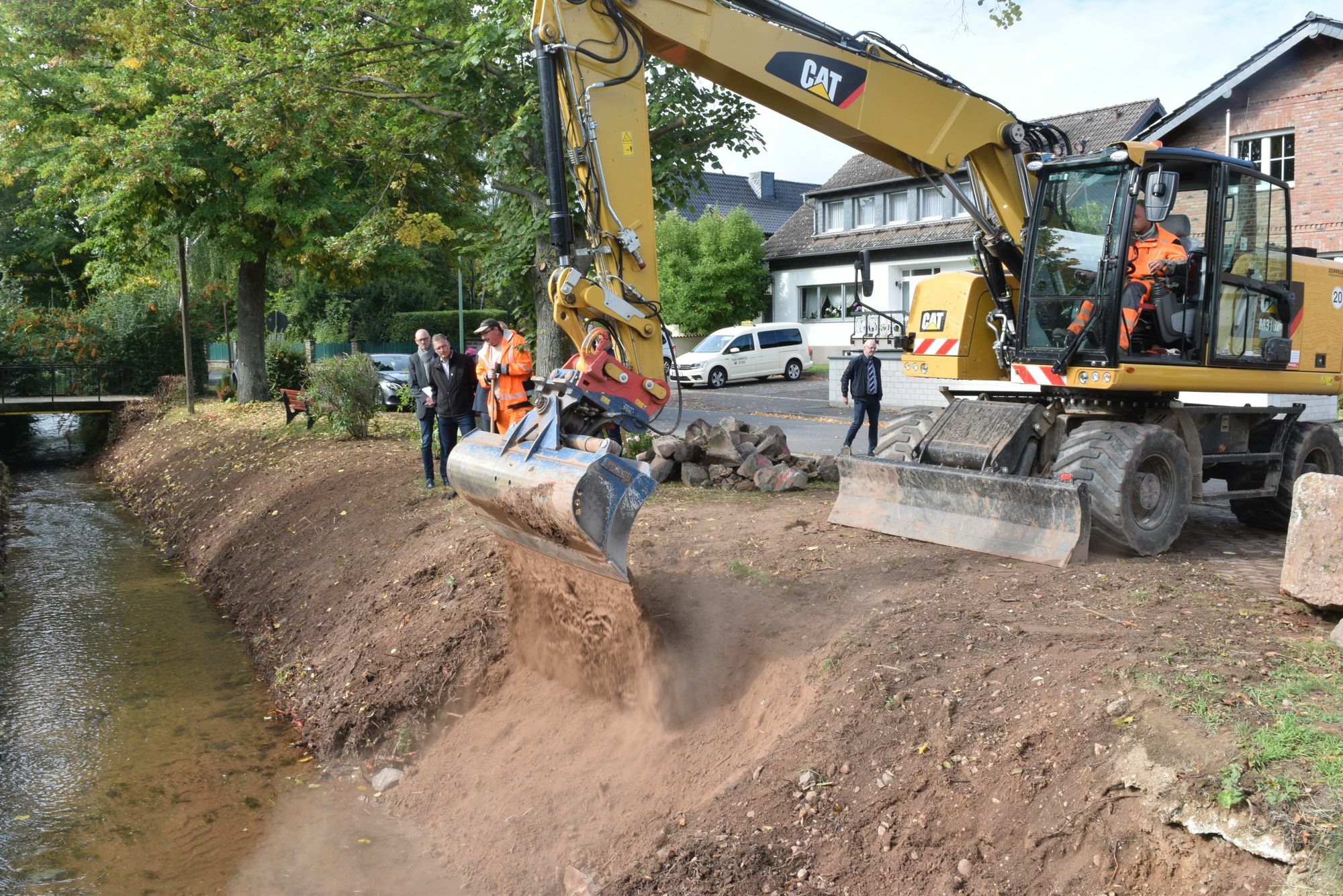 in extremes Hochwasserereignis hatte im Juli 2016 viele Menschen in den Zülpicher Ortsteilen Schwerfen und Sinzenich betroffen. In enger Zusammenarbeit mit der Stadt Zülpich hatte der Erftverband daraufhin ein Konzept zur Verbesserung des Hochwasserschutzes erarbeitet. In der Straße »An der Gülichsburg« in Schwerfen ist jetzt eine erste Maßnahme umgesetzt worden. Eine etwa 30 Meter lange Engstelle des Rotbachs wurde beseitigt. Dadurch soll der Bach künftig etwa 15 Prozent mehr Wasser aufnehmen können, ohne über die Ufer zu treten.