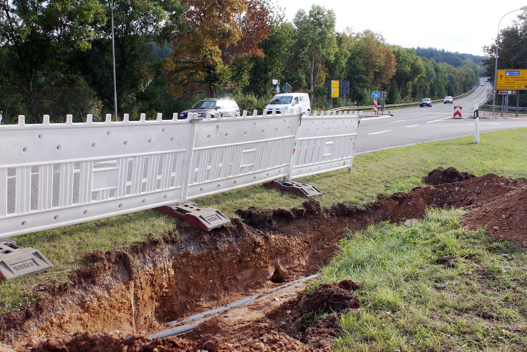 »Das wurde seit langem gefordert, denn damit können wir eine Unfallhäufungsstelle entschärfen, an der es in der Vergangenheit immer wieder zu Abbiegeunfällen gekommen ist«, sagt Andreas Groß von Straßen NRW. Helmut Schmitz, Fachbereichsleiter der Stadt Mechernich fügt hinzu: »Für die Anwohner ist das eine wichtige Maßnahme, denn der Weg wird auch von Kindern auf dem Schulweg benutzt.« Im Zuge der Baumaßnahmen wurde jetzt damit begonnen, Leitungen und Kanäle umzulegen oder zu erneuen. Das betrifft unter anderem die Abwasser- und Trinkwasserkanäle ebenso wie die Gasleitung. Auch für die Straßenbeleuchtung müssen neue Leitungen verlegt werden, denn künftig sollen vor allem die Überwege für Fußgänger und Radfahrer gut ausgeleuchtet werden.