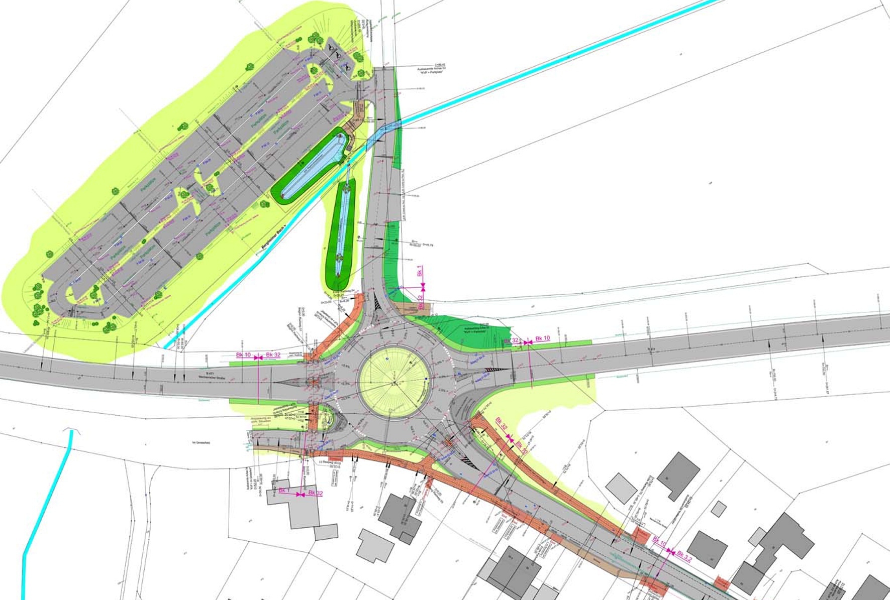 Während der Kreisverkehr gebaut wird, müssen Autofahrer für einen Zeitraum von etwa zwei Monaten auf eine Umfahrungsspur entlang der Baustelle ausweichen. Mit einem Durchmesser von 38 Metern soll es ein verhältnismäßig großer Kreisel werden. Fünf Ausfahrten verbinden die B477 zwischen Mechernich und dem Autobahnanschluss mit Breitenbenden, der Zufahrt »Im Ginsterfeld« und dem geplanten Pendlerparkplatz mit 133 Stellplätzen. Insgesamt kostet die Maßnahme rund 1,2 Millionen Euro. Darin schlägt der Kreisverkehr allein mit Kosten von 550.000 Euro zu Buche, wovon ein Drittel von der Stadt Mechernich getragen wird. Alle weiteren Kosten, unter anderem auch für die Erneuerung der Asphaltdecke auf der Bundes- und Landstraße, trägt der Landesbetrieb Straßen NRW.