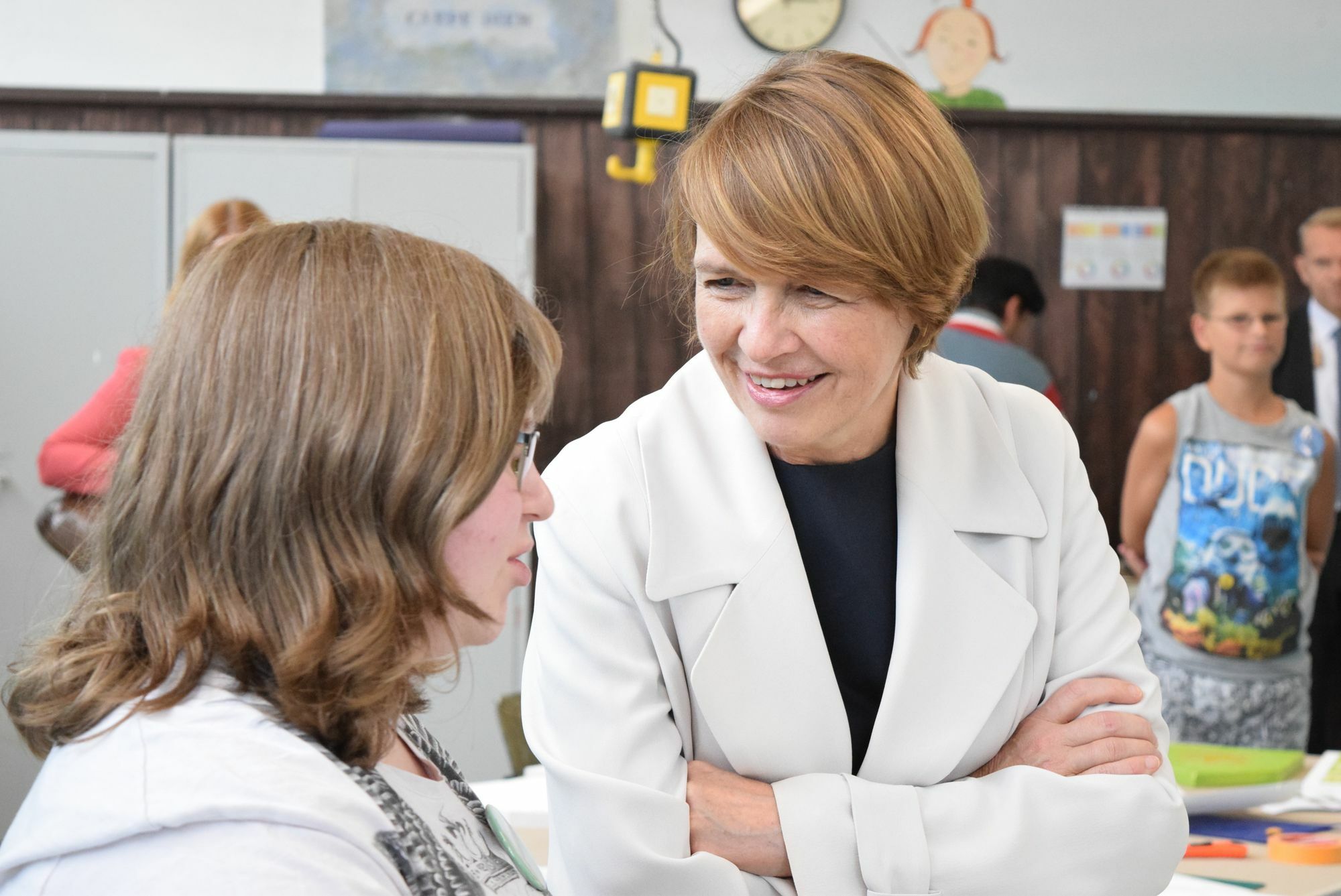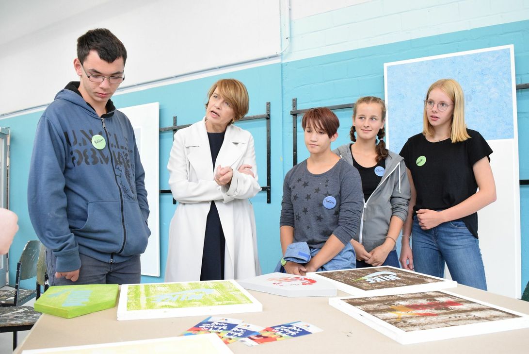 »Jeder kann alles werden«, lautet die Aussage der Initiative »Klischeefrei«, dessen Schirmherrin Elke Büdenbender ist. Sie setzt sich für die klischeefreie Berufsorientierung ein, die im Berufsbildungszentrum Euskirchen (BZE) gelebt wird. Deshalb stattete die Ehefrau von Bundespräsident Frank-Walter Steinmeier der Einrichtung einen Besuch ab. »Wir legen in unserem Haus besonderen Wert darauf, dass Mädchen und Jungen ohne geschlechtsspezifische Unterschiede Berufsfelder erkunden«, erzählte Jochen Kupp, Vorstand des BZE und führte Elke Büdenbender durch die Räumlichkeiten. Rund zwei Stunden informierte sie sich über das breite Angebot, besichtigte die Werkstätten und diskutierte mit Schülerinnen und Schülern über ihre Berufswünsche. »Jeder Mensch ist anders begabt und talentiert. Klischees und Rollendenken sollten daher den großen und wichtigen Schritt der Berufswahl nicht beeinflussen«, sagte Büdenbender. Die Verwaltungsrichterin selbst hat vor ihrer Karriere als Juristin eine Ausbildung als Industriekauffrau in einem Maschinenbaubetrieb absolviert. Für sie ist es daher eine echte Herzensangelegenheit, Jugendliche beim Übergang von der Schule in das Berufsleben zu unterstützen. Daher freute sie sich besonders, als bei einer abschließenden Gesprächsrunde die 16-jährige Nele, die aktuell die Marienschule in Euskirchen besucht, erzählte, dass sie später Polizistin werden möchte. Außerdem berichtete ihr Anna von ihrer Ausbildung als Schreinerin im BZE und dass sie mittlerweile bei den Nordeifelwerkstätten angestellt ist. »Viele entdecken erst bei uns ihr Interesse an Ausbildungen, die immer noch überwiegend dem anderen Geschlecht zugeschrieben werden«, ergänzt Ausbilderin Evelyn Dey. Am Ende des Tages zeigte sich Elke Büdenbender beeindruckt vom Engagement der Einrichtung. Büdenbender: »Wir müssen vorurteilsfreie Berufsorientierung in die Praxis tragen und junge Menschen unterstützen, ihren Lebens- und Berufsweg selbstbestimmt zu gestalten. Ein Blick von außen kann dabei noch einmal ganz andere Perspektiven eröffnen«.