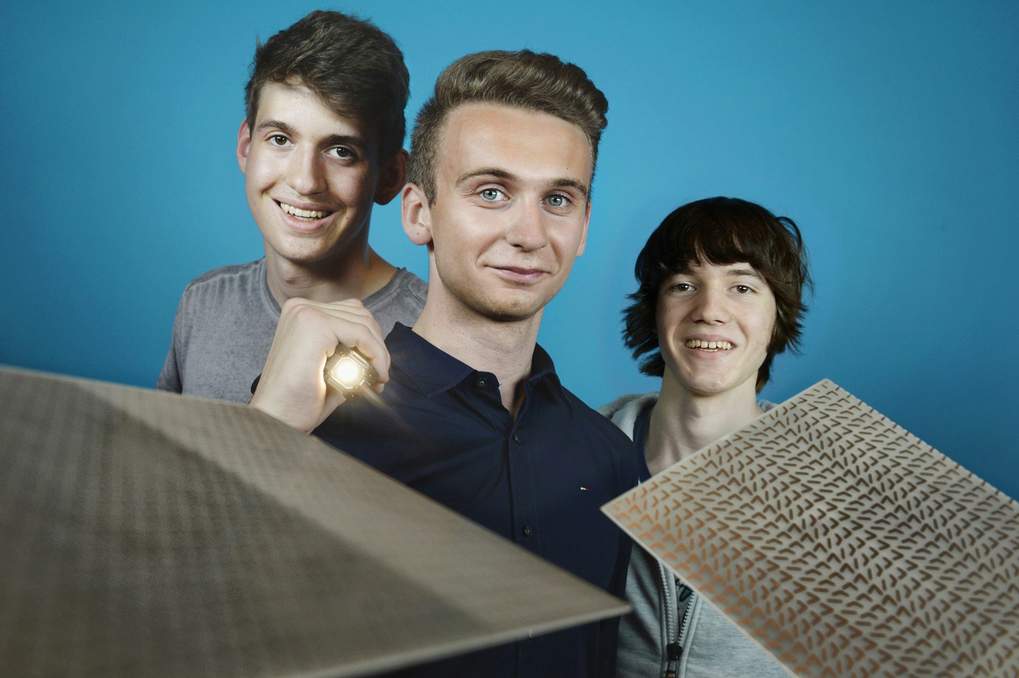 Für die diesjährige Runde von Jugend forscht hatten sich insgesamt 12.058 Jugendliche angemeldet. 191 MINT-Talente mit insgesamt 110 Projekten konnten sich letztendlich für das Finale von Deutschlands bekanntestem naturwissenschaftlichem Nachwuchswettbewerb qualifiziert. Sie präsentierten nun ihre spannenden und innovativen Forschungsprojekte im Heinz Nixdorf MuseumsForum in Paderborn. Mit dabei waren Maximilian Oehmichen (16), Adrian Lenkeit (16) und Marvin Lohaus (17) vom St. Michael-Gymnasium aus Bad Münstereifel. Die von Veronika und Walter Stein sowie von Dr. Eric Plum betreuten Schüler traten mit ihrem Projekt „Welle schaltet Welle – Experimente mit linearen Bauelementen für die optische Datenverarbeitung“ im Fachbereich Physik gegen eine sehr starke Konkurrenz an. Ihre Forschungsarbeit lässt sich stark vereinfacht wie folgt beschreiben. In den Mikroprozessoren von herkömmlichen Computern werden kleinste Elektroströme hin- und hergeschoben, die dann die Rechenleistung ausmachen. Es gibt jedoch ein weiteres Konzept, das prinzipiell schneller sein sollte – das Rechnen mit Licht. Bereits existierende Prototypen basieren zumeist auf teuren speziellen Werkstoffen und leistungsstarken Lasern. Daher haben Maximilian Oehmichen, Adrian Lenkeit und Marvin Lohaus nach einer preiswerten und energieeffizienten Alternative gesucht. Sie stellten raffinierte Metamaterialien her – Kunststoffplatten, auf die sie zum Beispiel Halbringe und Winkel aus Kupfer aufbrachten. Diese Platten beleuchteten die Jungforscher mit Mikrowellen und stellten dabei fest, dass sich mit diesem Aufbau tatsächlich einfache Rechenoperationen ausführen lassen. Hiermit überzeugten sie die kritischen Juroren. Sie wurden mit dem mit 1.000 Euro dotierten Sonderpreis für eine Arbeit aus dem Bereich der Informationstechnik ausgezeichnet, der vom Deutschen Zentrum für Luft- und Raumfahrt gestiftet wurde.