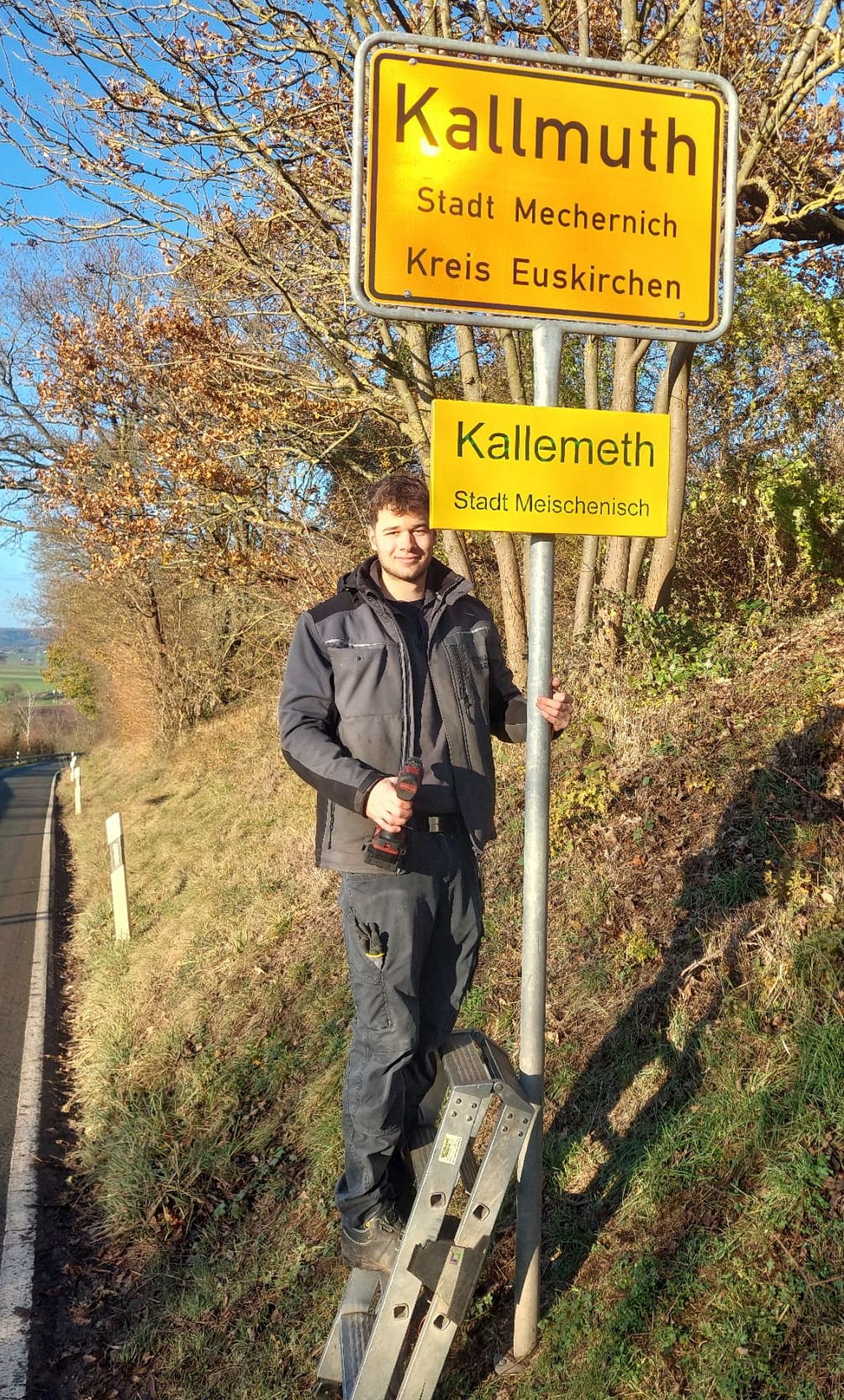 Das vom Land NRW im Rahmen des »Heimatscheck« geförderte Projekt realisieren half der frisch gebackene Metallbaumeister Jannes Müller, ein Spross der bekannten Hosteler High-Tech-Metallschmiede. »Jannes zeichnet für Entwurf und Layout, Herstellung, Schweißen und Montage verantwortlich«, berichtet der Kallmuther Ortsbürgermeister Robert Ohlerth.