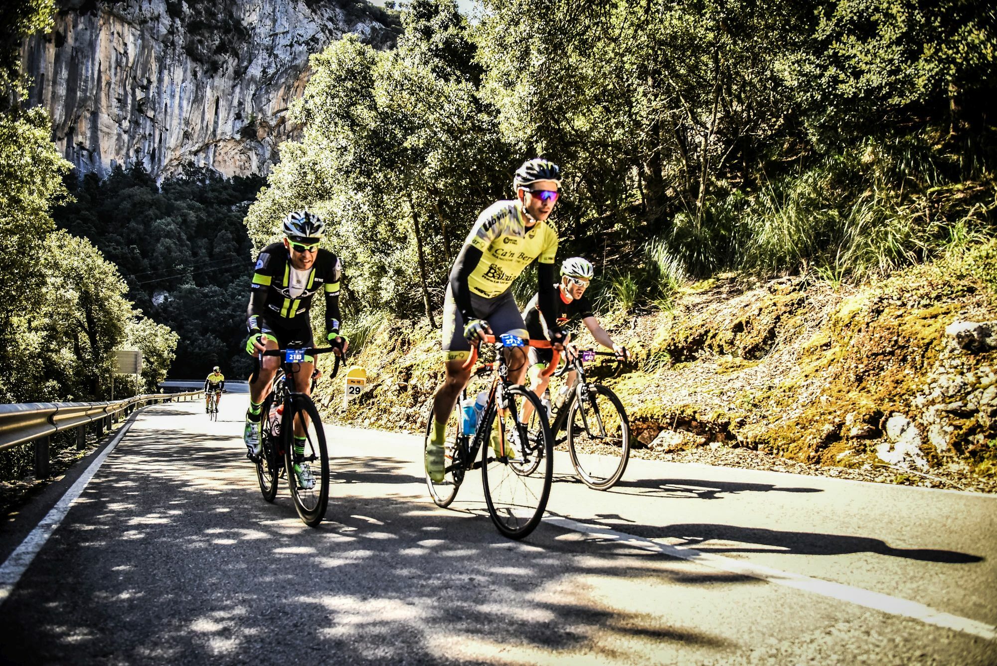 Beim »M312«, das seit einigen Jahren auf Mallorca stattfindet und - wie bereits geschildert, als eines der härtesten Radrennen für Amateure weltweit gilt, gingen Ende April 6500 Starter auf die Strecke. Sie hatten dabei die Auswahl, ob es über 167, 225 oder 312 Kilometer gehen sollte. Christian Dörfler aus Kall ging für das »Team MINI Düren« auf die 167 Kilometer lange Strecke, die insgesamt 2475 Höhenmeter aufwies. Um 9.15 Uhr fiel in »Platja de Muro« der Startschuss für alle Teilnehmer. Christian Dörfler: »Nachdem die ersten Kilometer neutral gefahren wurden, folgte bald der scharfe Start.« Bereits am ersten Anstieg, dem »Coll de Femenia«, konnte sich nach rund 35 Kilometern eine sechsköpfige Spitzengruppe absetzen, in der auch Dörfler vertreten war. Auf dem folgendem »Coll de Puig Major« hatte die Gruppe einen Mitstreiter verloren. Die verbleibenden fünf Ausreißer stürzten sich gemeinsam in die Abfahrt runter nach Soller. Dörfler: »Die Gruppe harmonierte gut zusammen, so dass es nach drei weiteren Colls, die es noch zu überfahren galt, und einigen Versuchen, sich von der Gruppe abzusetzen, am Ende im Ziel in Platja de Muro zu einem Sprint kam.« Und bei dem belegte Christian Dörfler dann den vierten Platz.