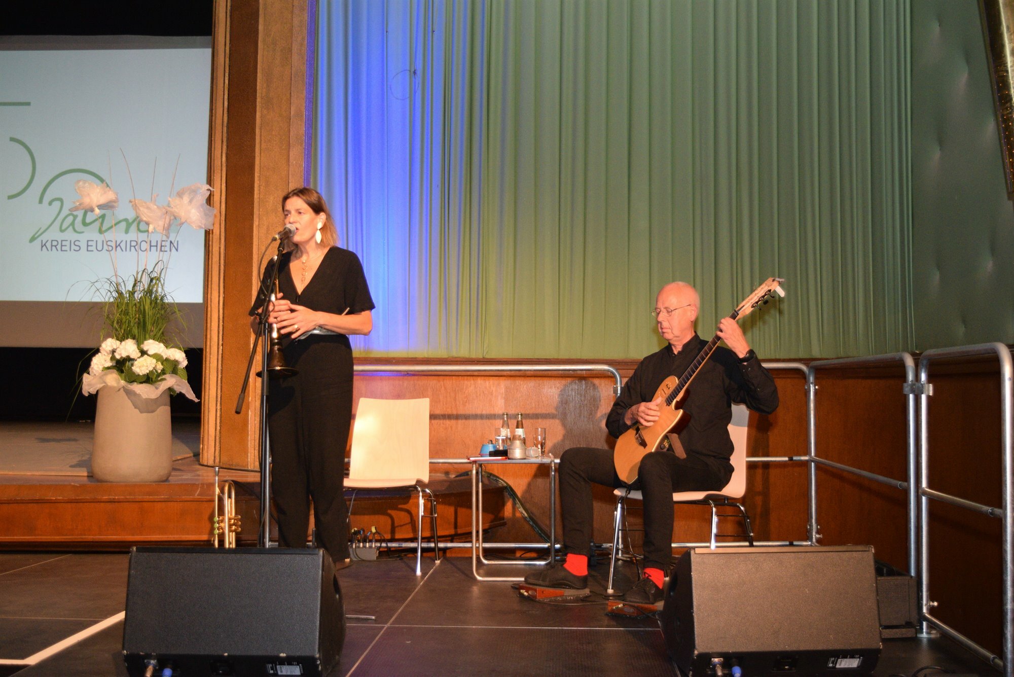 Für die passende musikalische Umrahmung des Festaktes sorgte das Duo Susanne Riemer und Wilhelm Geschwind, das eigenwilligen Jazz-Kompositionen, zuweilen auch im rheinischen Dialekt gehalten, begeisterte.