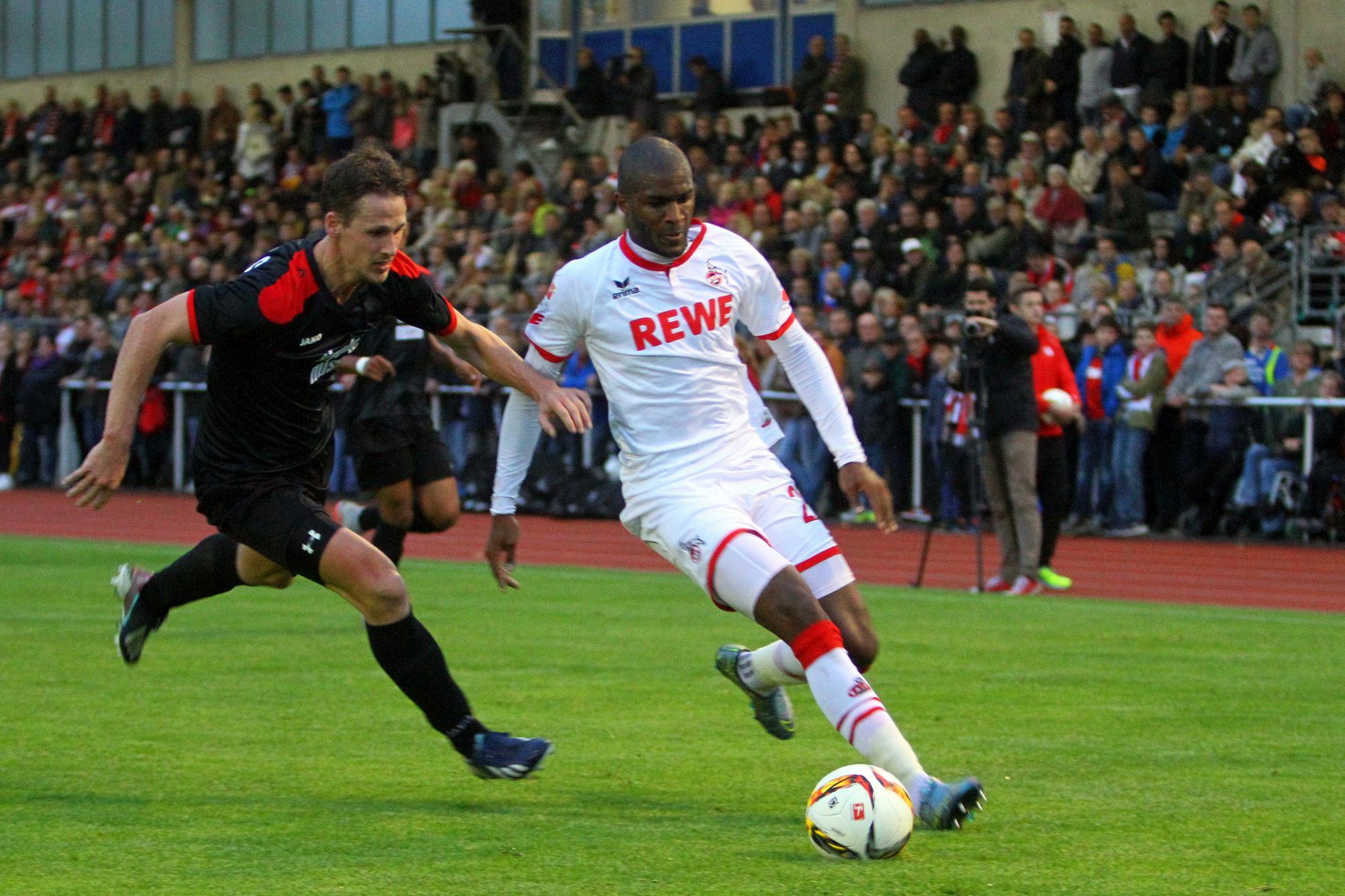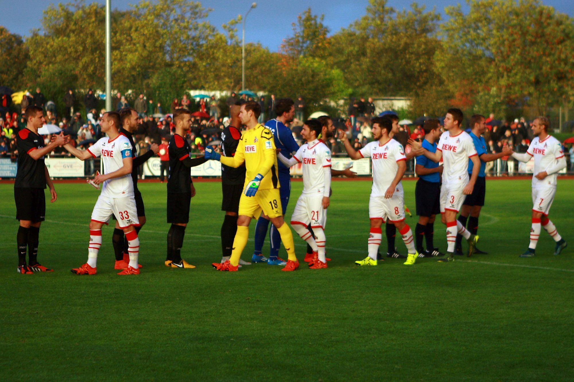 Rund 2.500 Zuschauer hatten den Weg ins Euskirchener Erftstadion gefunden, um die Partie zwischen der Profimannschaft des 1. FC Köln gegen den Mittelrheinligisten TSC Euskirchen zu verfolgen. In einer attraktiven ersten Halbzeit boten die Spieler von FC-Trainer Peter Stöger die erwarteten Leistungen und gingen bereits in der 8. Spielminute durch Philipp Hosiner in Führung. Zwar wehrten sich die Kreisstädter eisern und erarbeiten sich auch eine gute Torchance, aber gegen den übermächtigen Gegner aus der Domstadt war kein Kraut gewachsen. FC-Torjäger Anthony Modeste (36., 45.) und Milos Jojic (42.) brachten dem 1. FC Köln die 4:0-Pausenführung. Der 1. FC Köln war mit einer Mischung aus Profis und U21-Spielern im Erftstadion aufgelaufen. Nach dem Seitenwechsel hatte Coach Peter Stöger fast komplett durchgewechselt und die Partie verflachte etwas, aber das tat der Stimmung keinen Abbruch. Der FC Köln erhöhte in der 47. Spielminute durch Bard Finne zum 5:0-Endstand. Zwar hatte vor allem ETSC-Stürmer Sascha Engel noch einige gute Chancen, den Ehrentreffer zu erzielen, doch der wollte nicht fallen. Nach dem Abpfiff durch den Unparteiischen Niklas Dardenne gab es für die Fans kein Halten mehr und die Kölner Profis schrieben artig Autogramme und posierten mit den Fußballbegeisterten für Selfies. Vor der Partie hatte der TSC Euskirchen einigen ehemaligen Spielern und Trainern mit einem Blumenstrauß "Danke" gesagt. Alle haben natürlich auch eine Karriere beim 1. FC Köln gehabt. Jens Keller, Andrzej Rudy, Toni Regh, Nino Flohe wurden von Fußballabteilungsleiter „Ibby“ Trimborn begrüßt. Zufrieden mit dem Testspiel waren nicht nur die Offiziellen des TSC Euskirchen wegen der guten Resonanz, sondern auch FC-Coach Peter Stöger: „Es war ein gelungener Testabend. Wir sind beim TSC Euskirchen bestens aufgenommen worden und haben uns hier sehr wohlgefühlt.“ Text und Fotos: Paul Düster