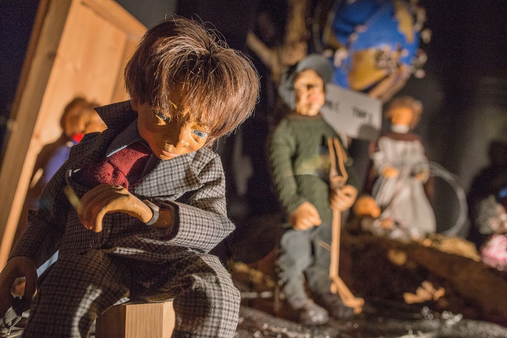 Neben den klassischen Darstellungen finden sich auch Werke, die zum Nachdenken anregen. Die deutsche Künstlerin Marie Therese Jung, die bereits in den achtziger Jahren mit sozialkritischen Krippen Aufsehen erregte, ist erneut vertreten. Ihre Szenen zeigen gesellschaftliche Brüche: eine zerrissene Familie, ein entlassener Arbeiter, Armut und Überforderung. Dazwischen spielen Kinder aus aller Welt friedlich miteinander – ein Hoffnungsschimmer inmitten ernster Bilder.